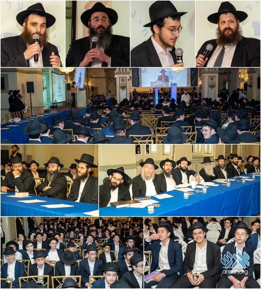 Hundreds of bochurim from the three divisions packed Oholei Torah’s wedding hall for the siyum, and the entire hanhala joined as well.