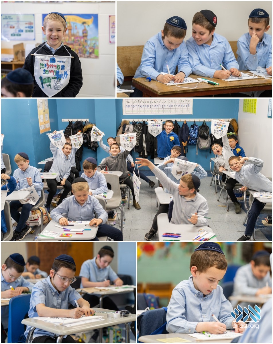 Each class was joined by two dedicated class mothers who guided the boys in creating personalized Purim banners to proudly display in their homes. This hands-on project allowed the talmidim to express their creativity while building excitement for the upcoming Yom Tov.