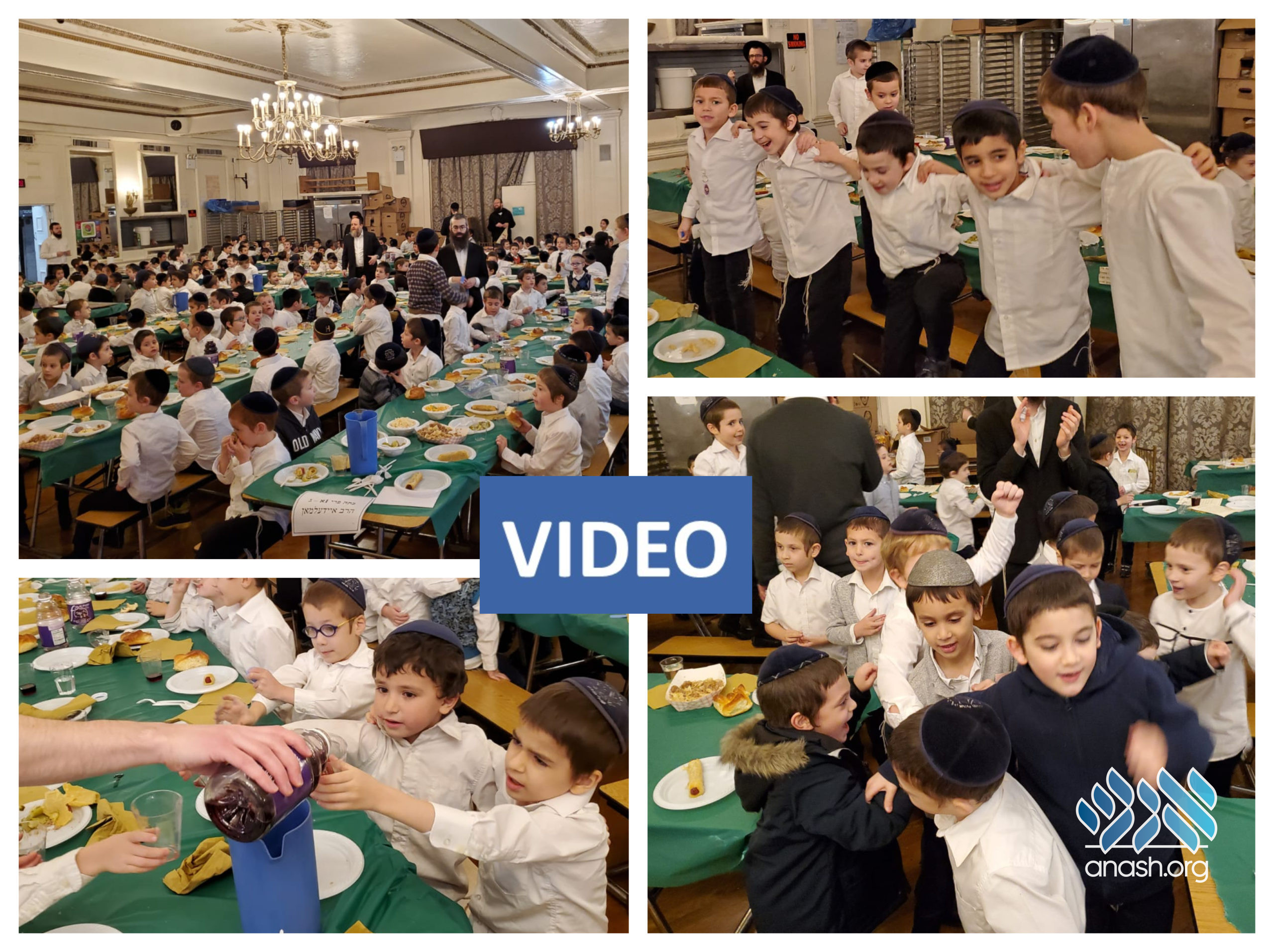 The youngest grades of Oholei Torah held their own Yud Tes Kislev farbrengen today, with treats, stories, music and dancing.