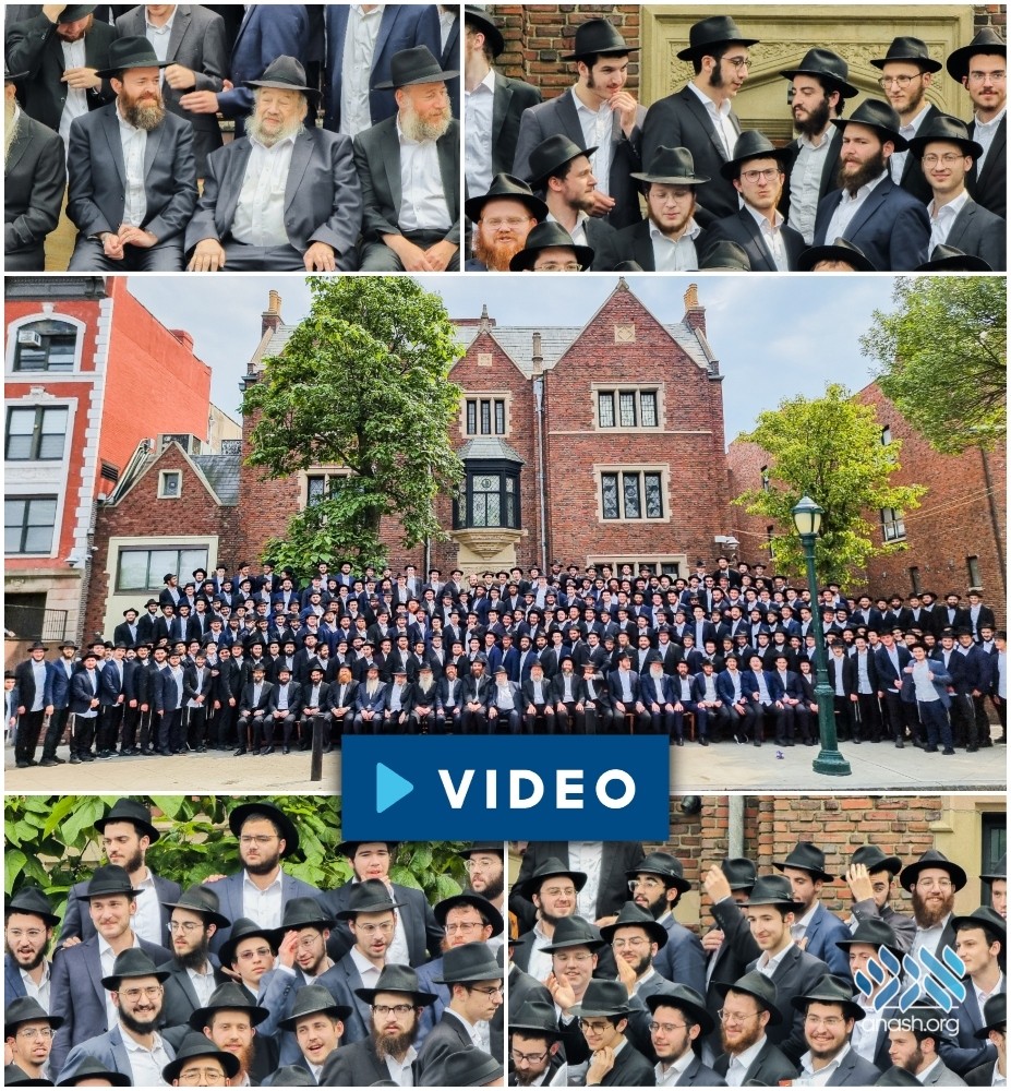 The bochurim of Oholei Torah Shiur Daled, who will be heading this coming year out on shlichus to yeshivos around the world, gathered with their hanhala in front of 770 on Sunday for a group photo.