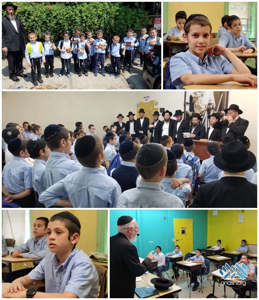 In accordance with the Rebbe’s clear directive, Ohr Menachem of Crown Heights held their first day of cheder on 3 Elul, even as many camps are still in session. Students were welcomed with a special gathering and treats.