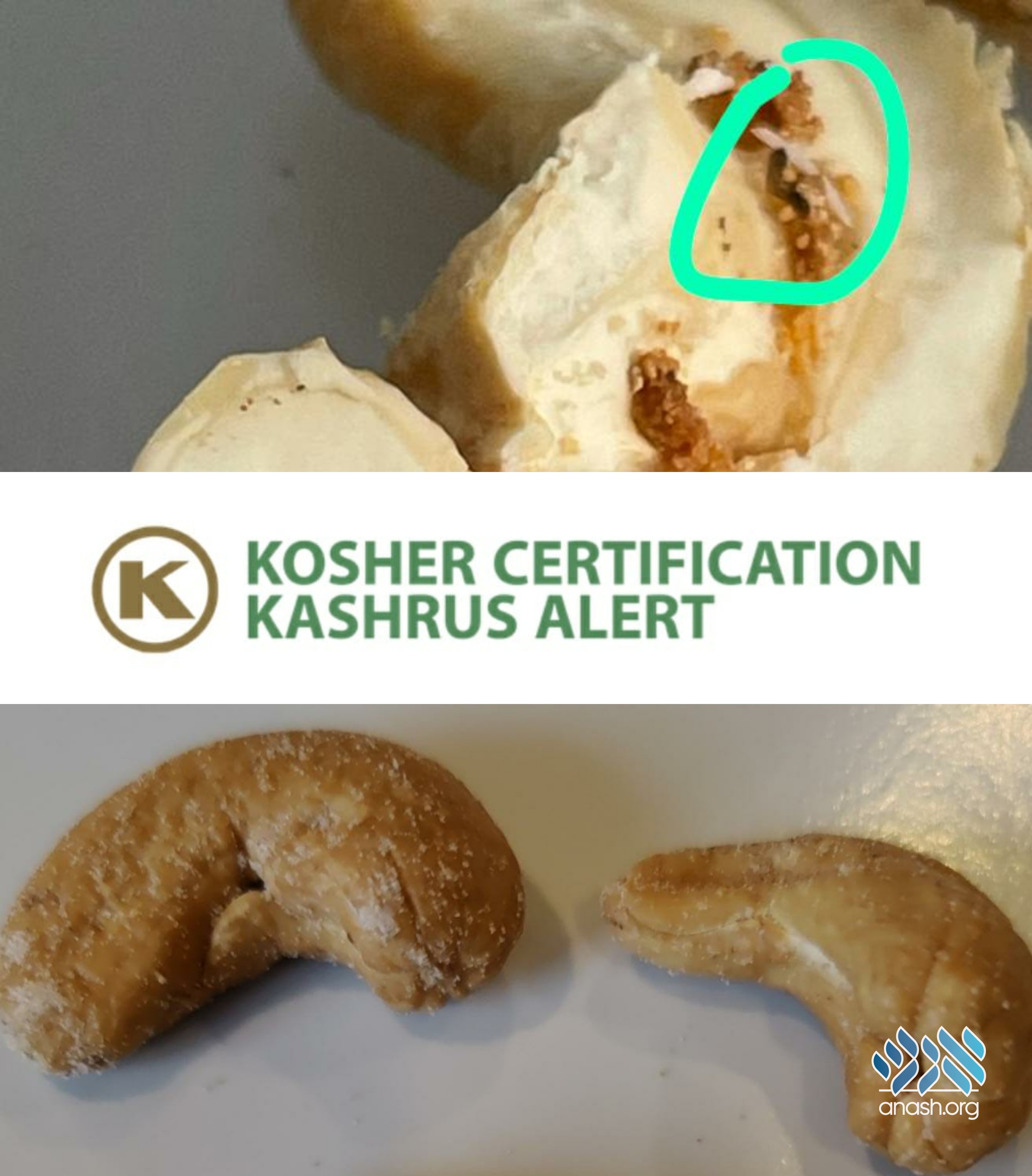 The OK Kosher Tolaim Committee has been finding insects and worms in cashews. Consumers should split them open and give a cursory inspection. The issue is typically found when there are holes. Consumers should be extra vigilant, they advised.