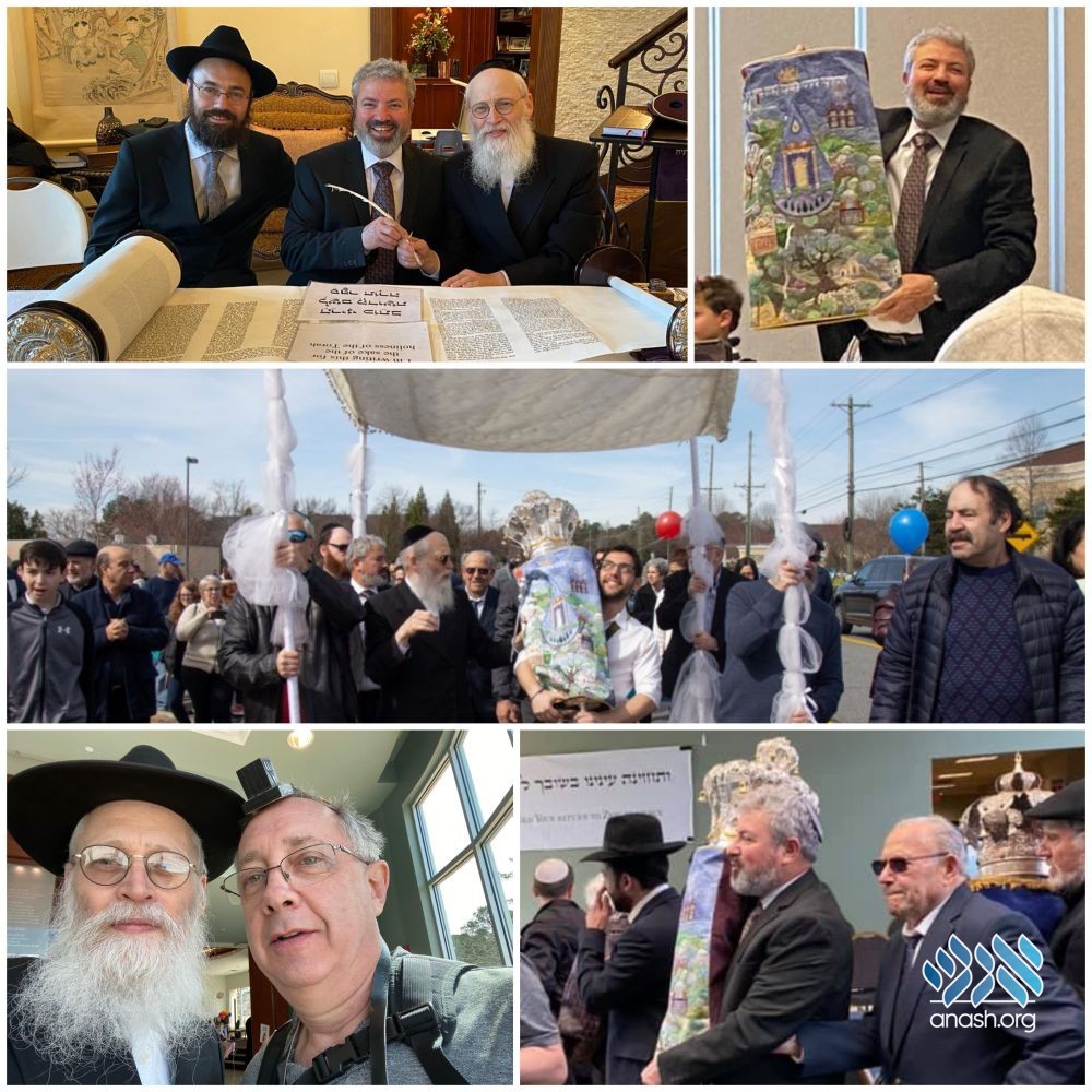 As it happened, Mumbai survivor Moshe Holtzberg was there at the same time celebrating his hanachas tefillin, and was honored with filling in a word. Several months passed, and the time came to bring the Torah home.