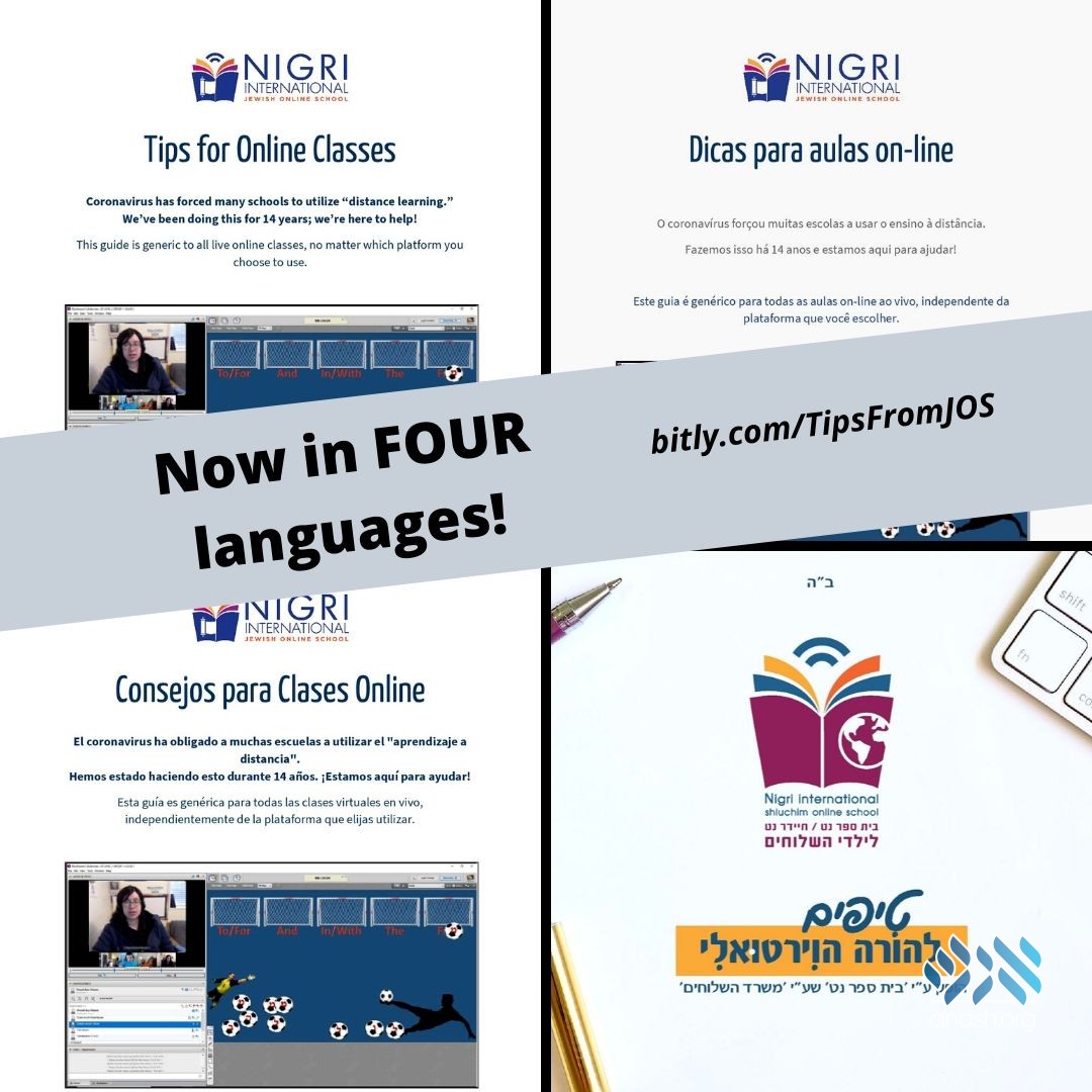 Free tips for teachers, parents and students on how to maximize online learning, are now available in English, Hebrew, Spanish and Portuguese. Courtesy of the Nigri Jewish Online School.