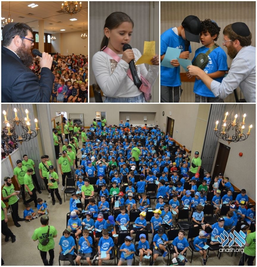 Camp Lubavitch’s rally in honor of Gimmel Tammuz was an unforgettable event. Over 600 campers and 140 staff members gathered together at the day camp’s headquarters in the Chabad Lubavitch auditorium, at 770 Chabad Gate in Thornhill, Ontario! The atmosphere was filled with energy as campers led the reciting of the Pesukim. They then gave Tzedakah and received treats.