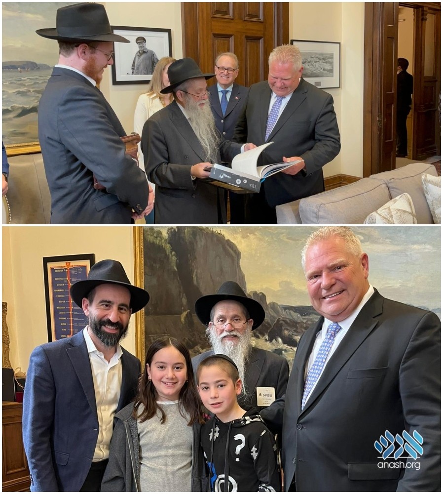 Ontario Premier Doug Ford presented Head Shliach Rabbi Zalman Grossbaum with a proclamation in honor of the Rebbe’s birthday, recognizing the impact of the 35 Chabad Centers in the Province of Ontario.