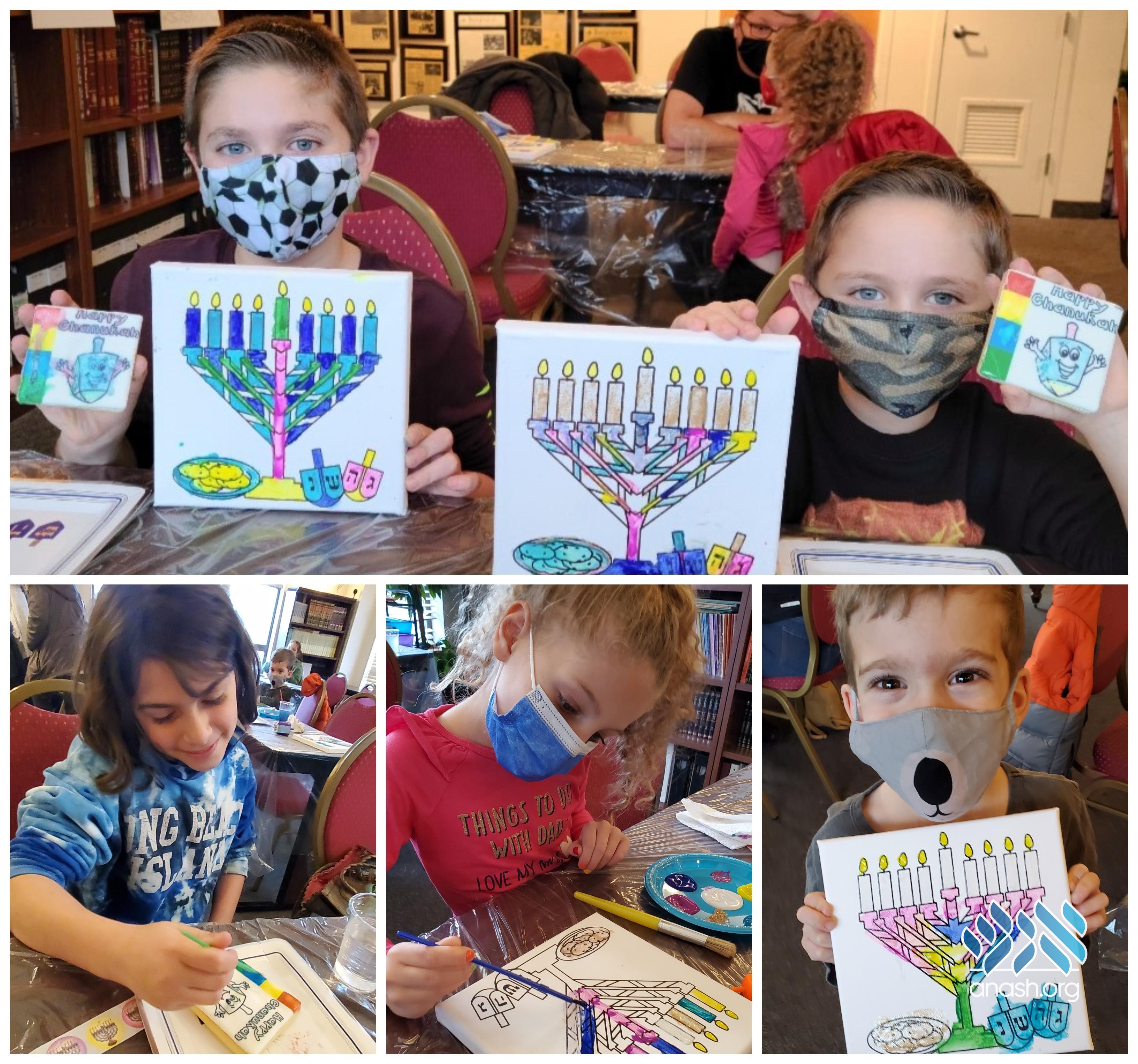 Children then painted festive Menorah Canvas art, and finished the exciting afternoon painting colorful Chanukah cookies. They left with a special gift of candy-filled dreidels and chocolate coins.
