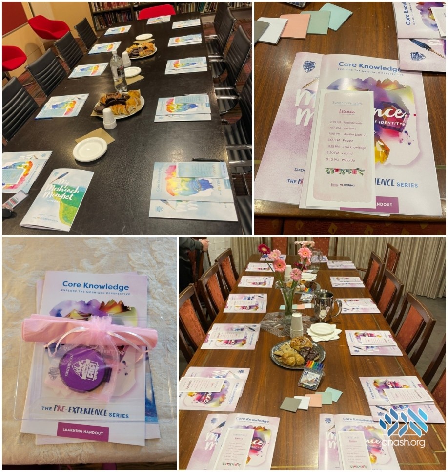 Each Pre-Experience is a fully developed event package shipped to your door. In addition to the tools for learning a new Moshiach Mindset, including illustrated learning pages and take-home journals, the box is packed with all you need for a seamless event. From prepared guides and props for the MC (no hired speaker needed) to menu to decor inspiration and a ready-to-go Amazon shopping cart (a.k.a. your event planner), plus a cute memento for each participant, it’s got you covered!