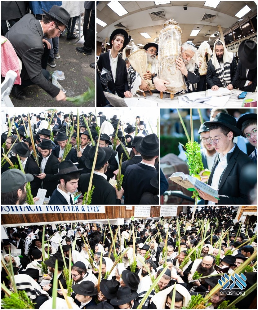 Thousands gathered in 770, in the Tishrei Tent and in every available spot outside on Monday, Hoshana Rabba to hold minyonim for shacharis and hoshanos.
