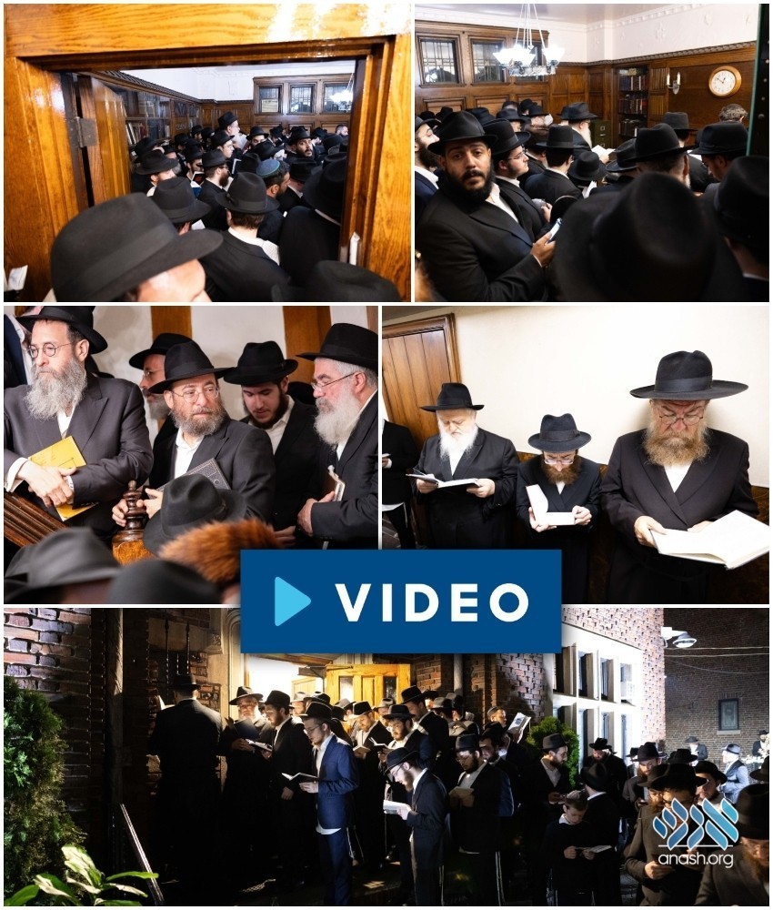 Hundreds packed the Rebbe’s room at 770 Eastern Parkway for the first selichos of the year. The overflow crowd spilled out into the foyer area and outside the building.