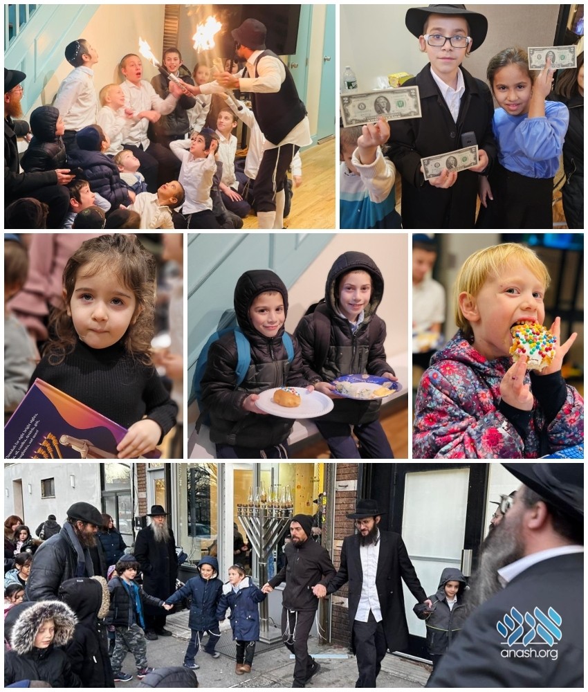 This year OYYL’s party was also a Chanukas Habyis for their new boys building located in 333 Albany Ave, also known as Binyan Sheleg and a first Menorah lighting. Many visitors entered our building to join the fun celebration. The children recited the 12 Pesukim and received prize tickets.