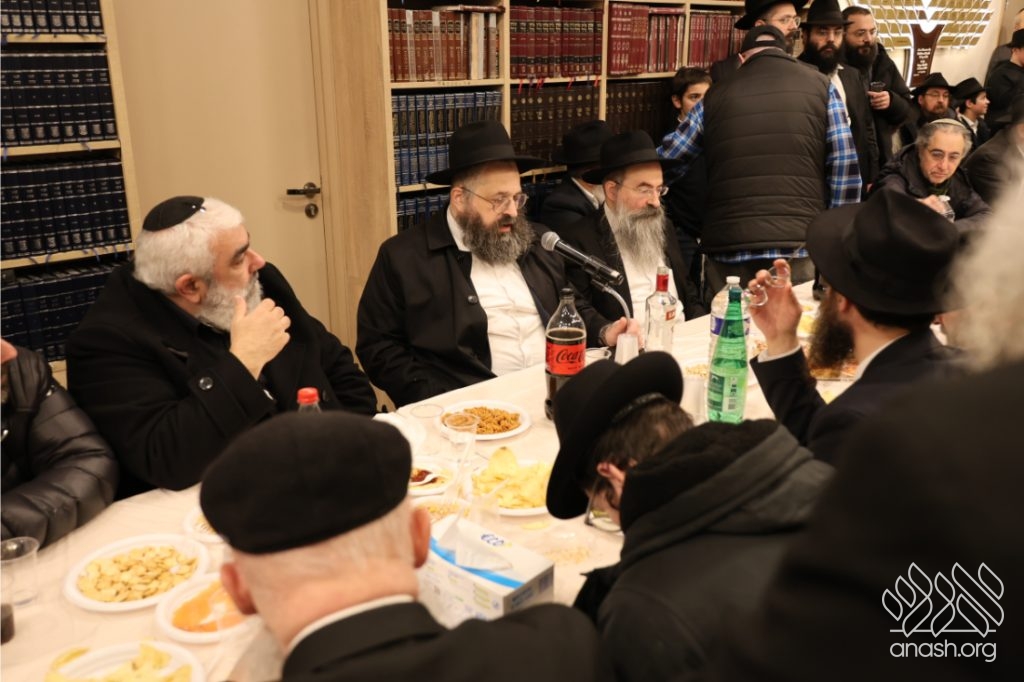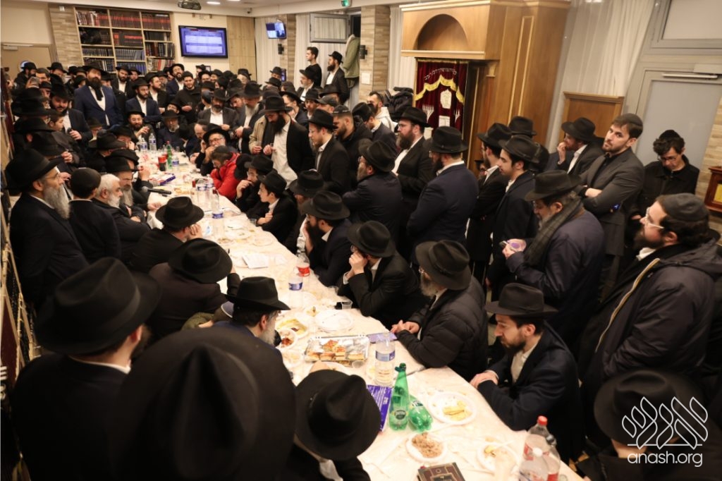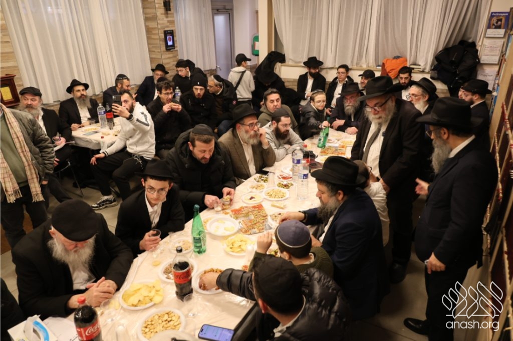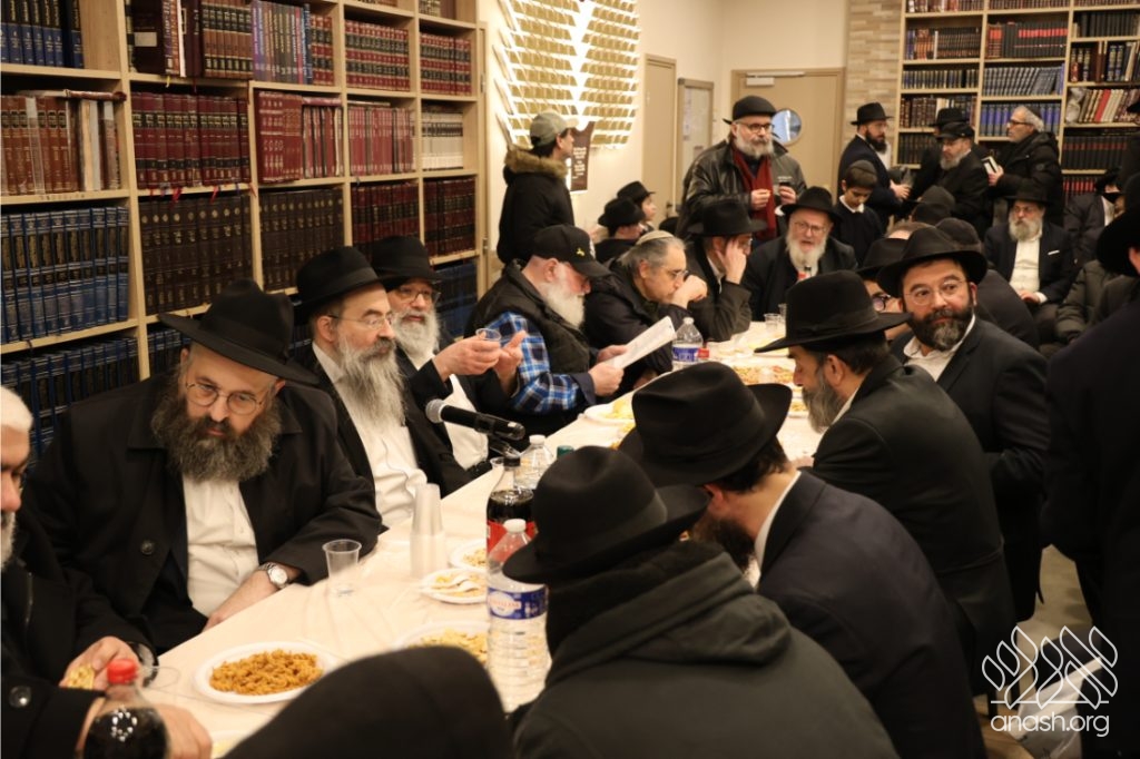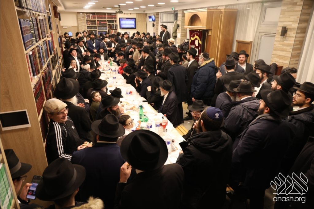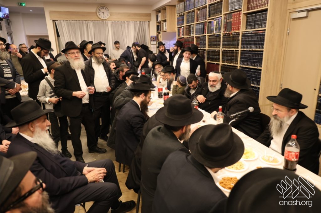 A central farbrengen was held in Paris, France, on Chof Beis Shevat, yahrtzeit of Rebbetzin Chaya Mushka, with Rabbi Levi Azimov, Rabbi Mendel Azimov, and Rabbi Elchonon Marosov.