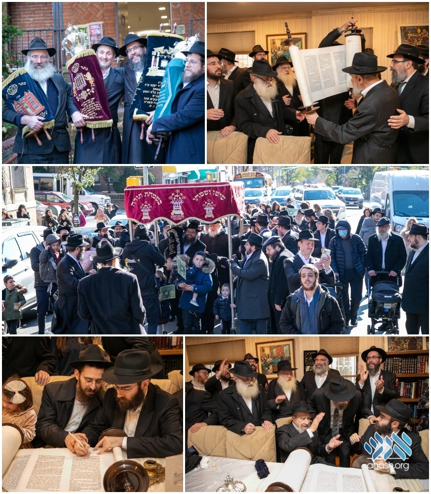 The Torah’s final letters were written at the Paltiel residence, followed by a joyous parade to the Kahal Chassidim Shul on Carroll Street, where festive hakafos took place.