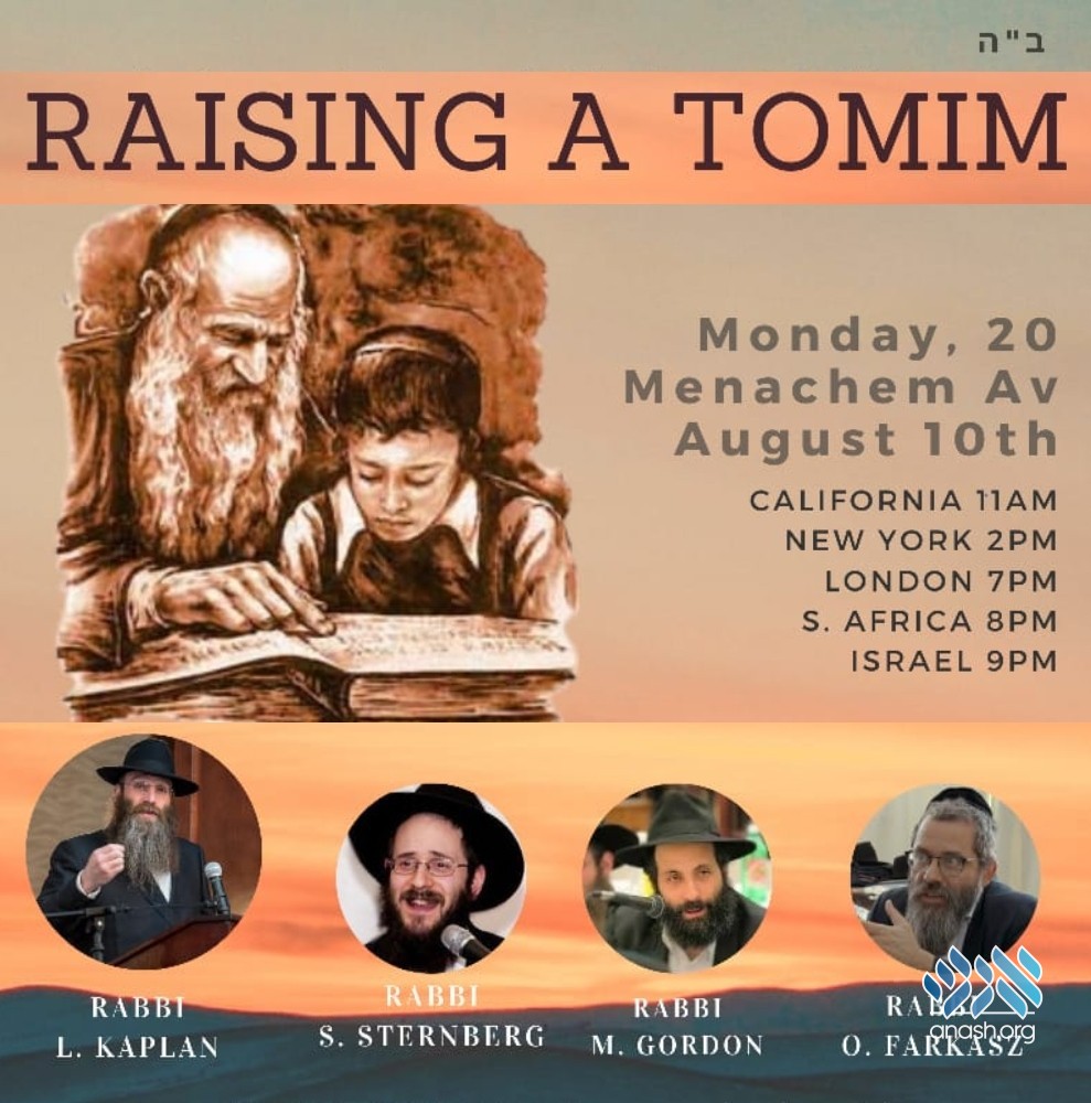 Titled ‘Raising a Tomim’ the panel will take place on Monday, 20 Av, August 10th at 2 PM ET. The panelists will discuss challenges and problems facing current-day bochurim, and debate the best way to approach these issues.