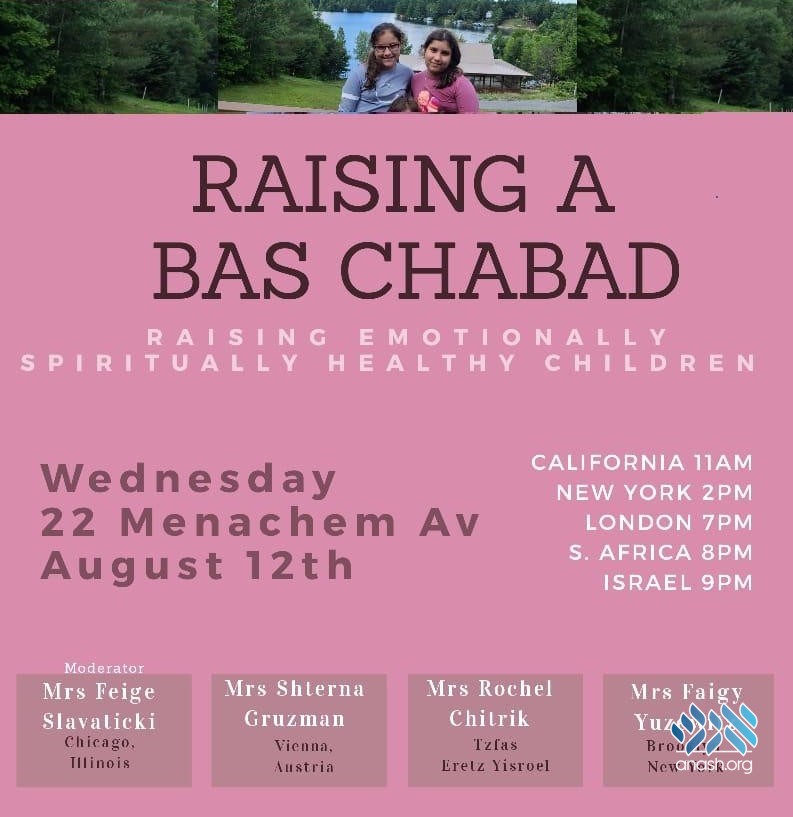 Titled ‘Raising a Bas Chabad’ the panel will take place on Wednesday, 22 Av, August 12th at 2 PM ET and will be streamed live on Anash.org’s N’shei site. The panelists will discuss challenges and problems facing current-day girls and teenagers, and debate the best way to approach these issues.