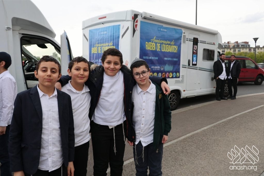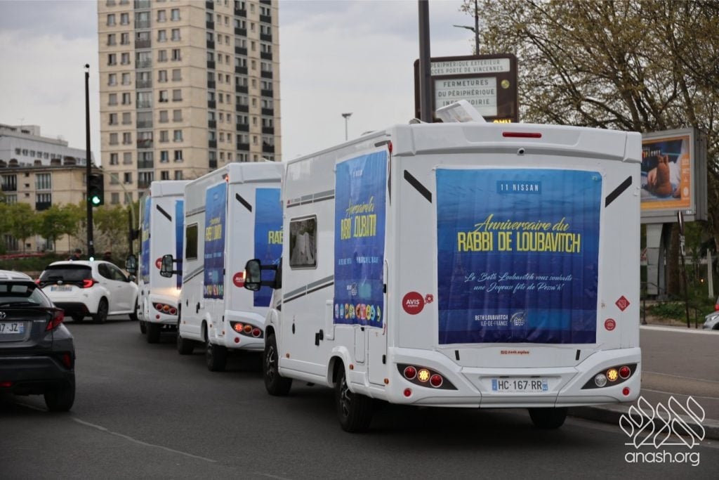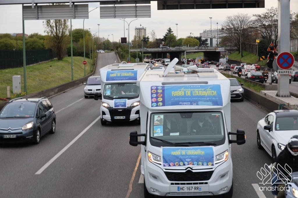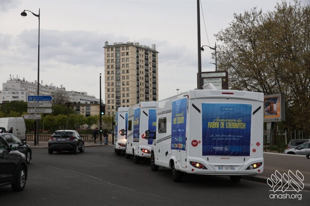 Mitzvah tanks rolled through Paris for Yud Alef Nissan, spreading Yiddishkeit across the city. The day concluded with a large farbrengen in honor of the Rebbe’s birthday.