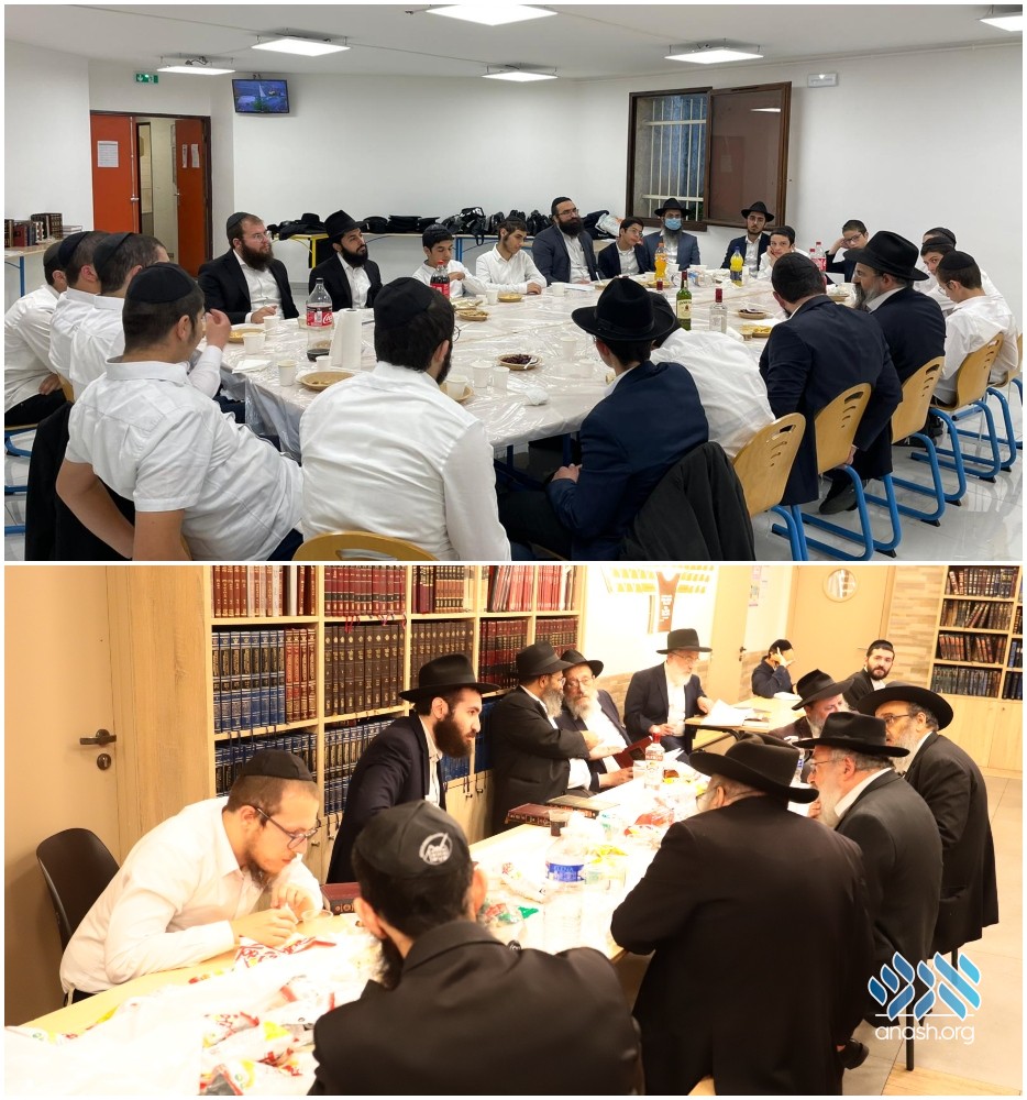 Farbrengens were held across Paris, France to mark Vov Tishrei, yahrzeit of the Rebbe’s mother, with Rabbi Mendel Azimov farbrenging in the Neuilly-sur-Seine Chabad House, and Rabbi Levi Azimov farbrenging in the Chabad yeshiva in Cergy.