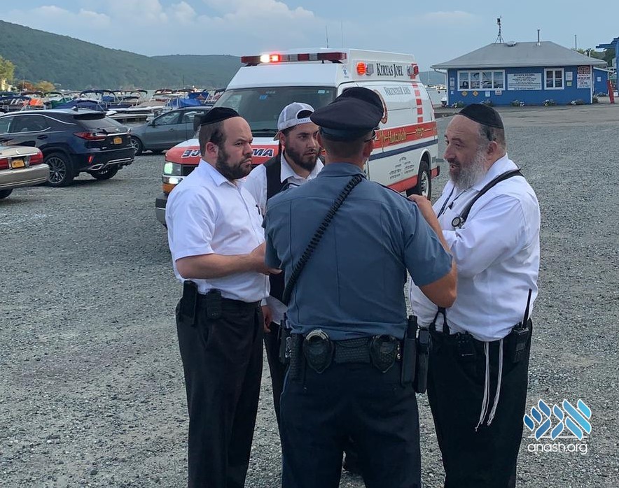 Personnel operating on the scene include Hatzolah from Kiryas Joel, New York, Rockland Chaverim, NY State Police, NJ State Police, Us. Coast Guard and other local fire departments. Rockland Chaverim are deploying a boat and have multiple drones already scanning the water.
