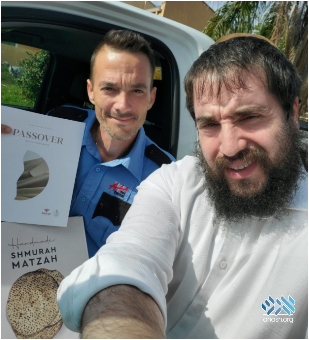 One mitzvah leads to another, and he left with a box of matzah and a holiday guide to learn about and celebrate the upcoming holiday of Pesach.