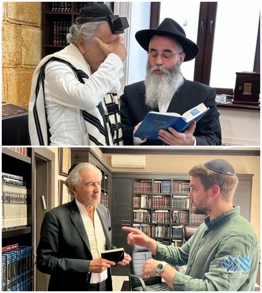 Renowned French-Jewish philosopher, Bernard-Henri Lévy, visited the “Mishpacha” orphanage in Odessa and agreed when the shliach offered to put tefillin on him, stating, “I pray for peace for the Jewish people and for peace in Ukraine.”