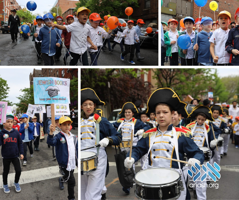 Crown Heights schools marched down Troy Avenue on Thursday morning, celebrating Lag Baomer with great fanfare.