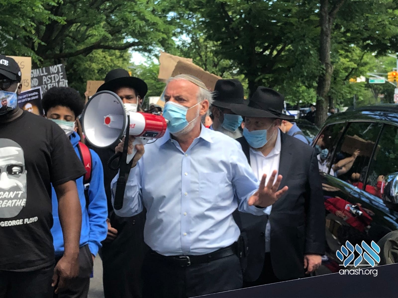 Crown Heights activist Rabbi Chanina Sperlin was seen at a ‘Justice for George Floyd’ protest on Ocean Parkway organized by Dov Hikind.