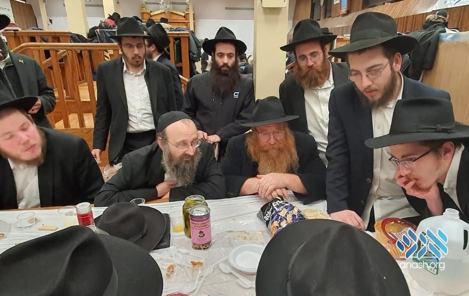 Rabbi Yosef Braun and Rabbi Zalman Liberow celebrated a “Chosson Mohl” with the students of Tomchei Temimim in 770, the night before the marriage of their children.