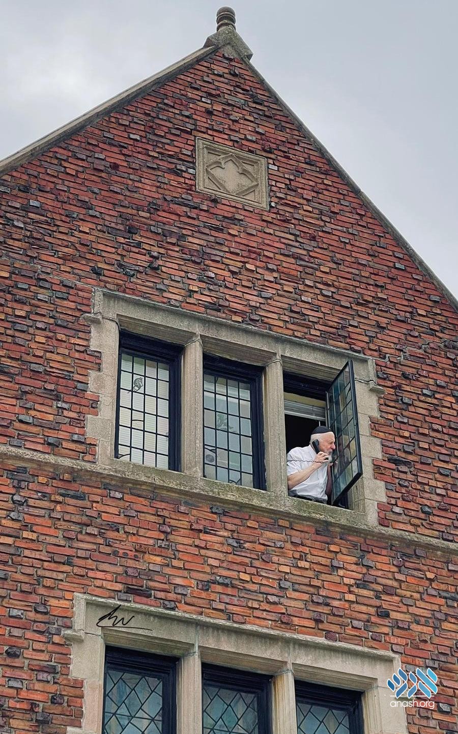 Rabbi Berel Levin, chief librarian of the Rebbe’s Library, glances out of the window of his office on the third floor of 770 Eastern Parkway.