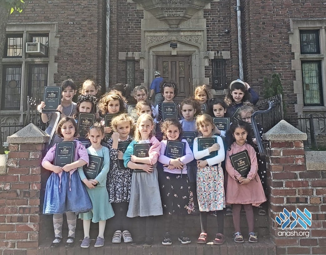Pre1Alef girls from Beis Chaya Mushka in Crown Heights who just celebrated their siddur party on Monday went today to 770 to Daven with their new siddurim.