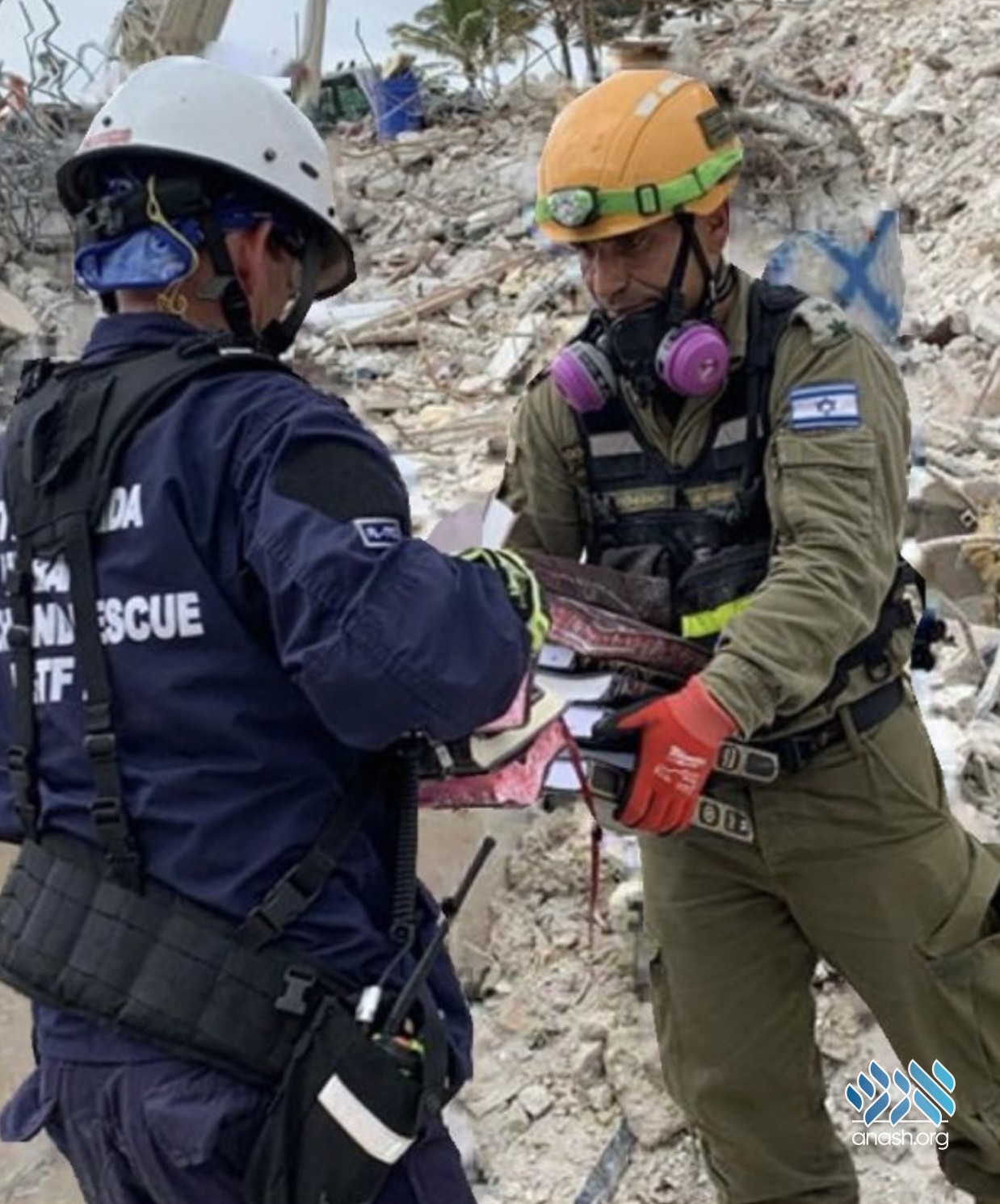 Rescue workers at the site of the Surfside building collapse were spotted removing Seforim from the mountain of rubble and handling them with appropriate care.