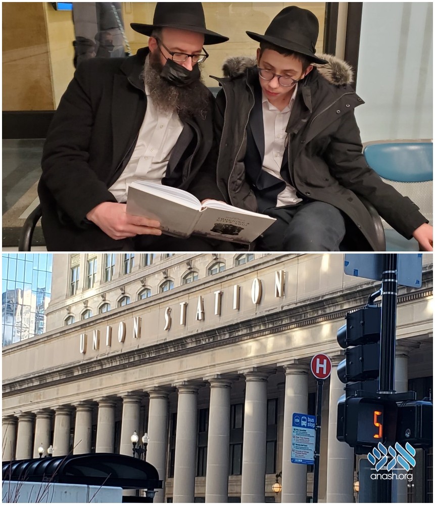 Rabbi Levi Notik, director of F.R.E.E. of Chicago, visited the Union Train Station in Chicago 80 years to the date after the Frierdiker Rebbe arrived at the same station, and sat to learn Kuntres Bikkur Chicago, which contains the sichos and ma’amarim said on the visit.