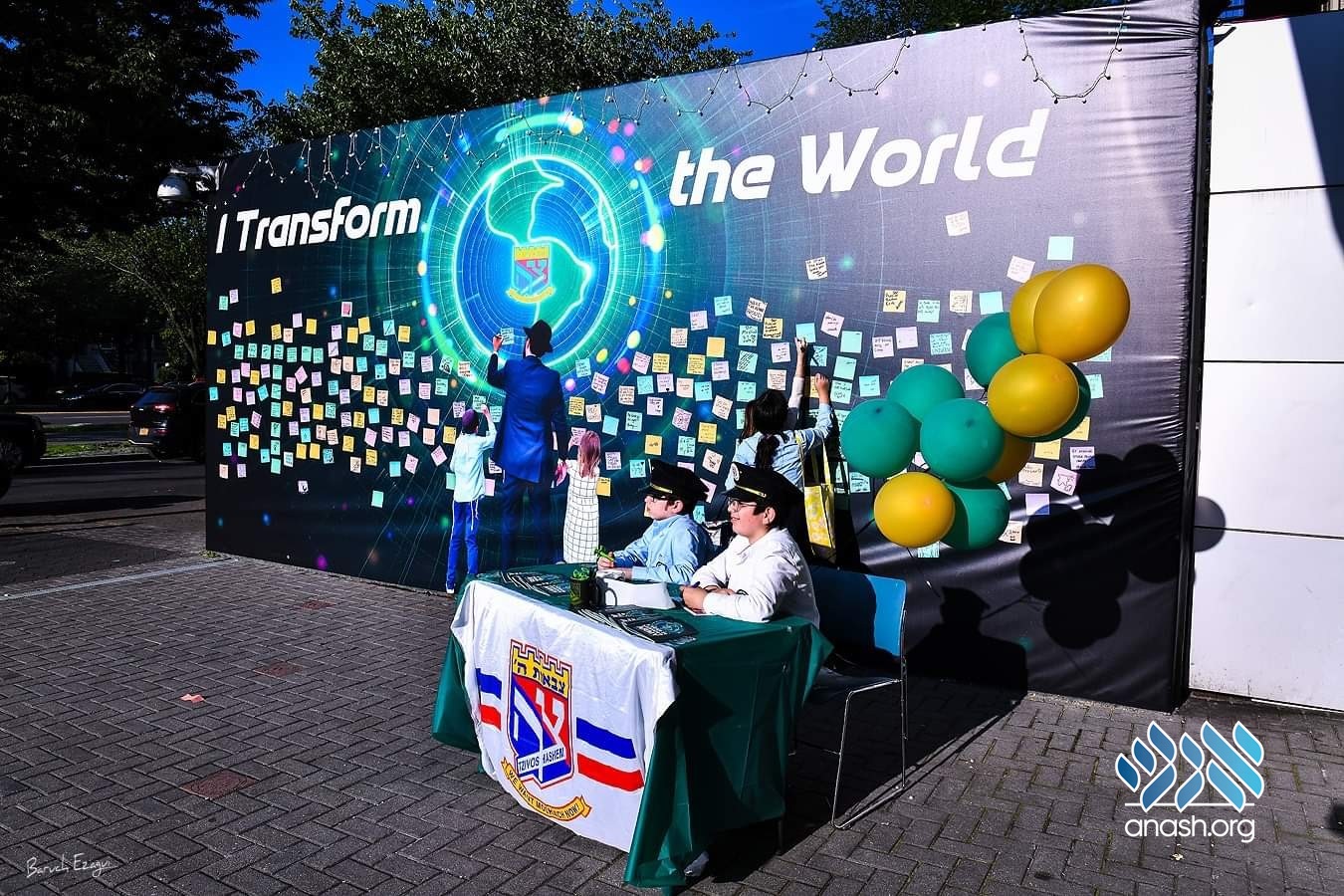 Two chayolim in Tzivos Hashem, sit outside headquarters during the last hours of Tzivos Hashem’s #THTransforms campaign.