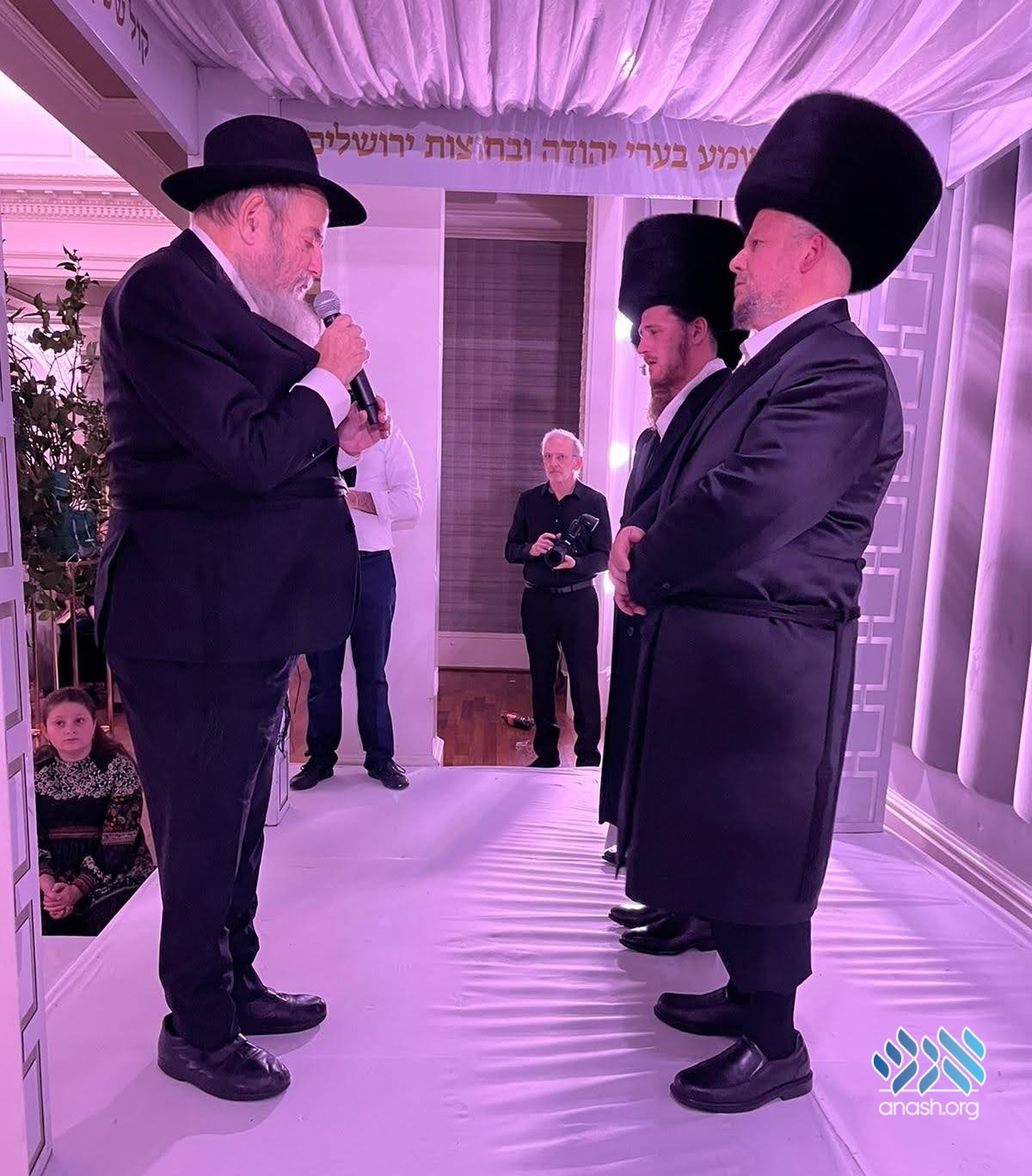 Rabbi Moshe Kotlarsky, Vice-Chairman of Merkos L’inyonei Chinuch, was honored under the Chuppah of Chazzan Yitzchok Meir Helfgot’s daughter at the Eminence Hall in Brooklyn on Sunday.