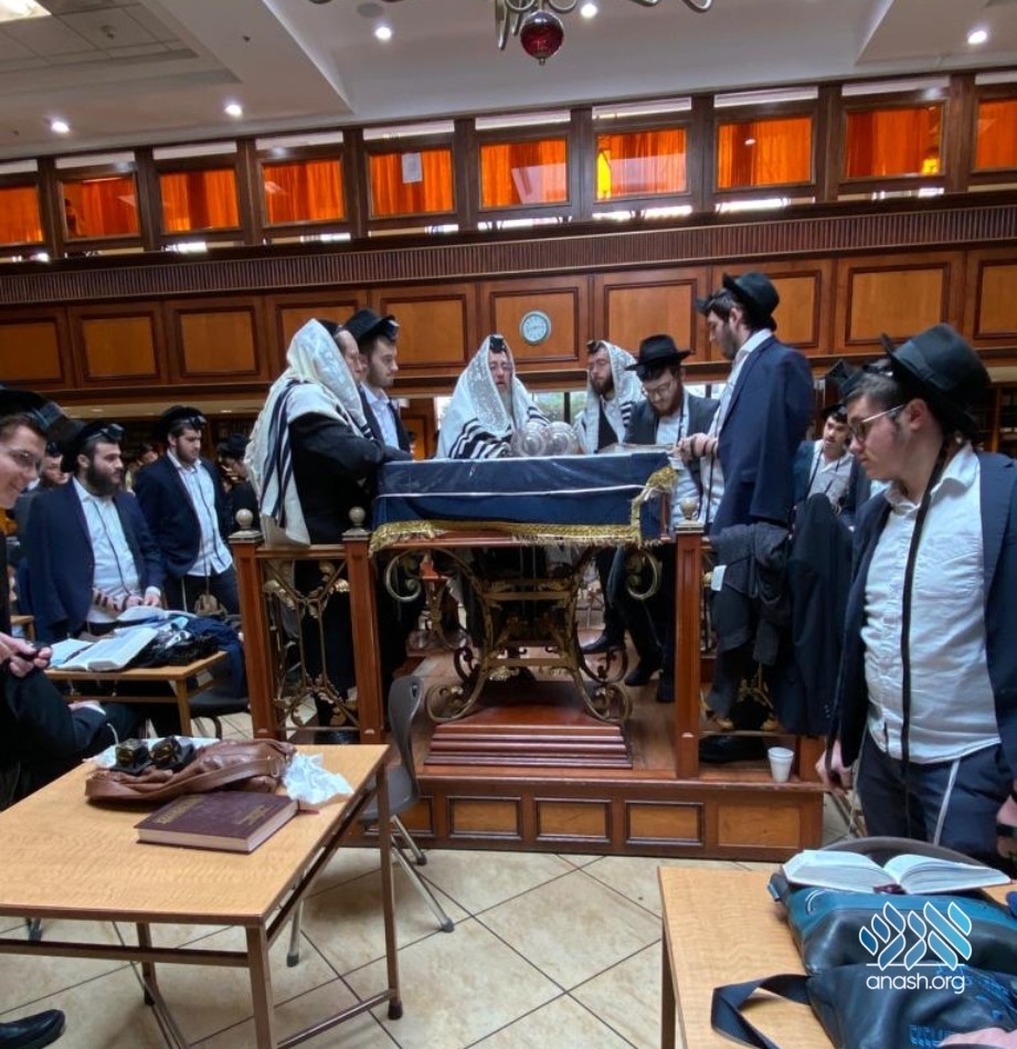 The Biala Rebbe of Bnei Brak joined Yeshivas Ohr Elchonon Chabad in Los Angeles on Thursday for shacharis of Rosh Chodesh, and was honored with an aliya.
