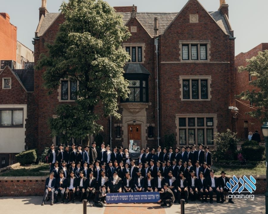 Bochurim and hanhala of shiurim alef and beis at Beis Medrash Oholei Torah posed for their yearly group picture in front of Beis Chayenu – 770.