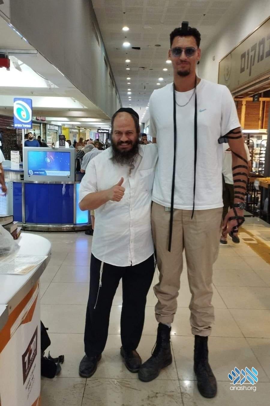 Basketball player Gilad Levi from the ‘Hapoel Be’er Sheva’ team, standing tall at over 7 feet, was seen putting on tefillin at the Chabad stand in Be’er Sheva’s central bus station.