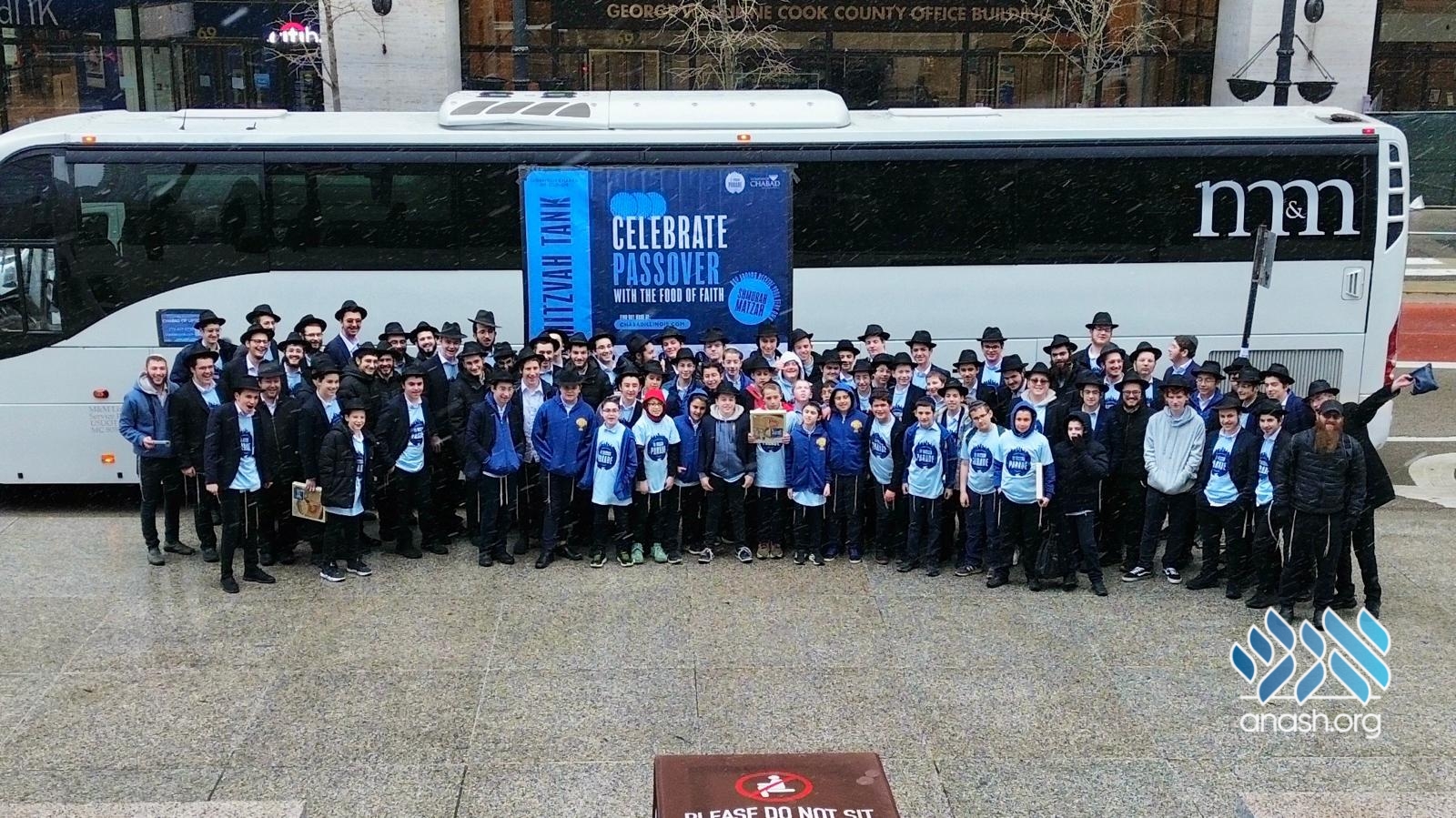 In honor of the Rebbe’s Yom Huledes, dozens of Chicago bochurim set out on a large scale Mivtza Matza in downtown Chicago where they encountered and inspired hundreds of Yidden.