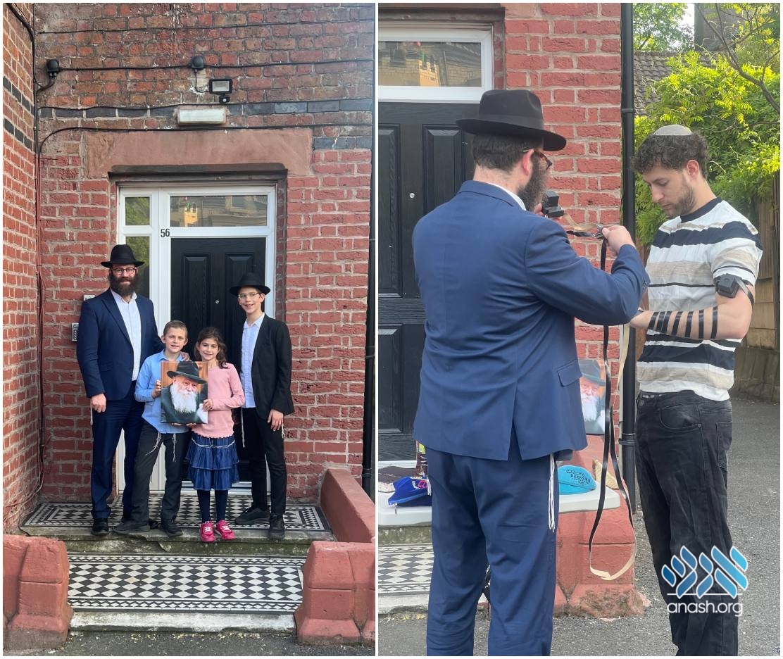 Marking the yahrtzeit of Reb Yisroel Aryeh Leib, the Rebbe’s brother, Rabbi Shmuli Brown, Shliach to Liverpool Universities, and his family, went on Mivtzoim outside the Rebbe’s brother’s house in Liverpool.