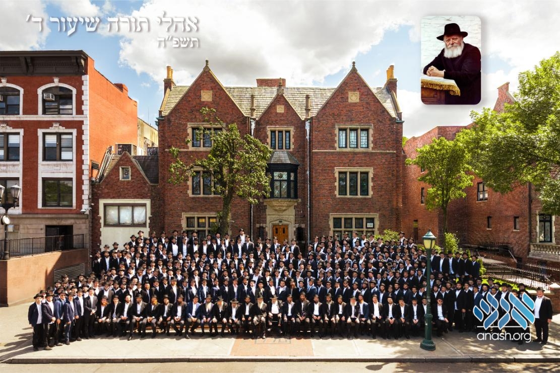 The bochurim of Oholei Torah Shiur Daled, who will be heading this coming year out on shlichus to yeshivos around the world, gathered with their hanhala in front of 770 for a group photo. High-resolution photo available for download.