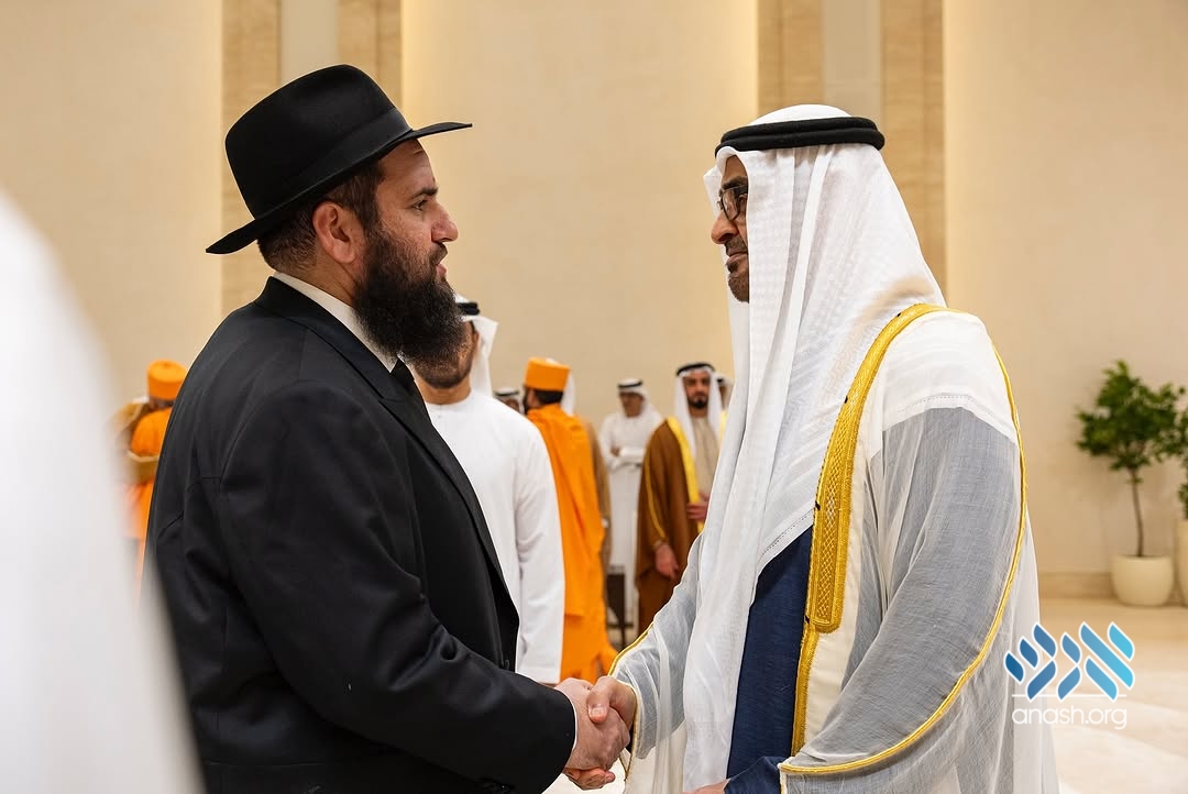 The President of the United Arab Emirates, Sheikh Mohammed bin Zayed, met with the Rebbe’s shliach to the UAE, Rabbi Levi Duchman, at a reception the Sheikh hosted in Abu Dhabi