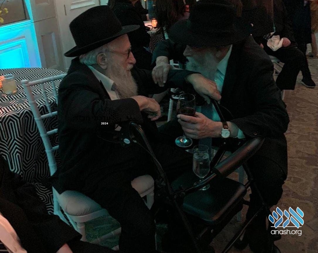 In this recent photo, two trailblazers who built Lubavitch in Florida, head shliach Rabbi Avrohom Korf a”h and Bal Harbor shliach Rabbi Sholom Ber Lipskar a”h, who both passed away within a short time, are seen conversing at a simcha in Florida.