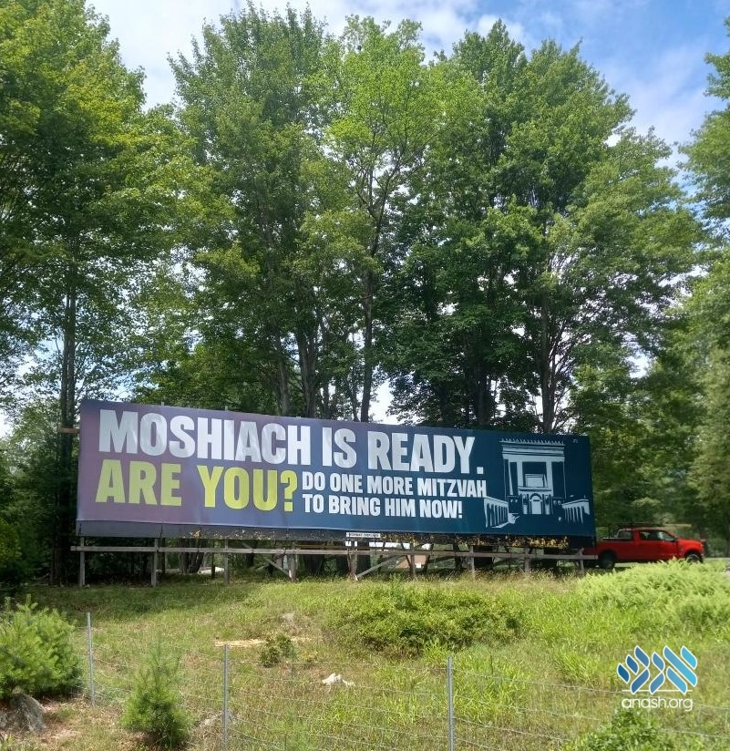 A new billboard on NY Route 17, between exits 107–108 on the way to the Catskills, shares the Rebbe’s message about Moshiach in a clear and welcoming way. The sign was inspired by the Rebbe’s words to the CNN reporter.
