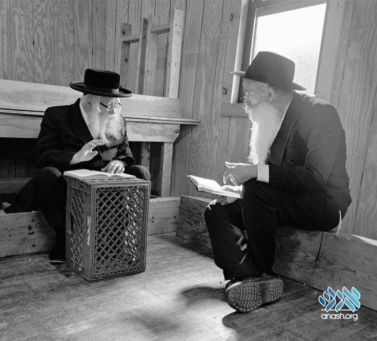 Rabbi Shmuel Kleinman, founder of Camp L’man Achai, and Rabbi Yisroel Heller, camp rabbi and mohel, say Kinos together at the camp.