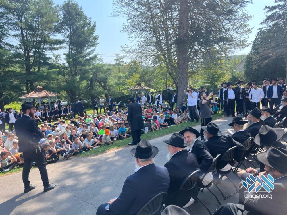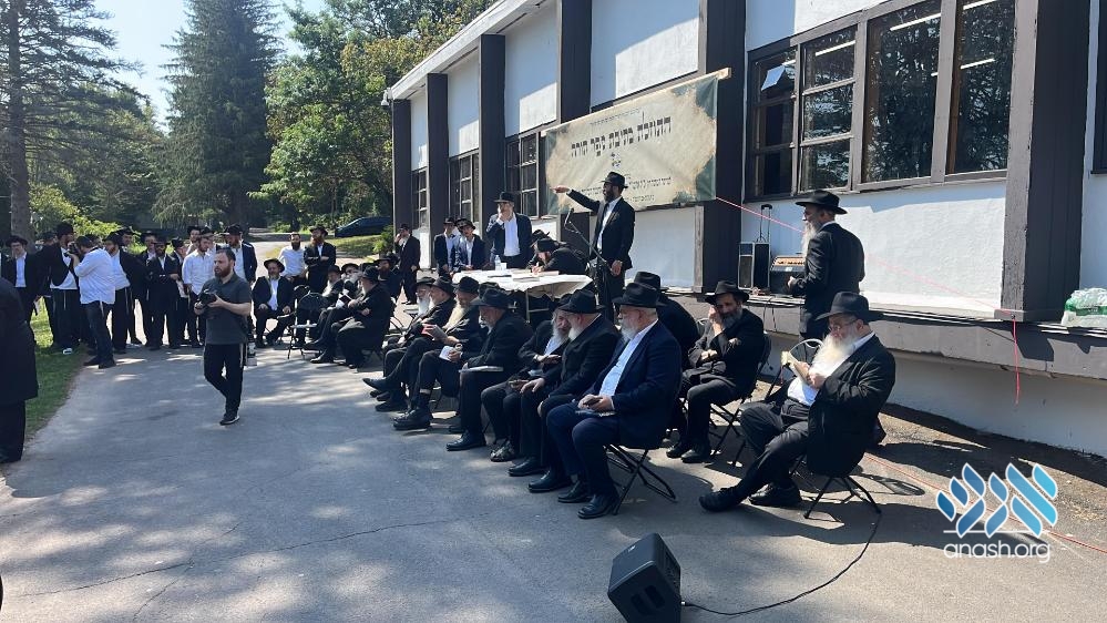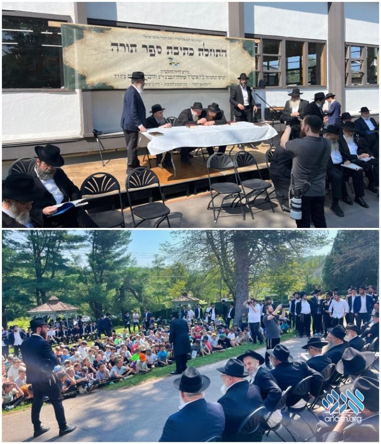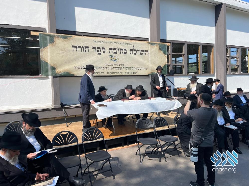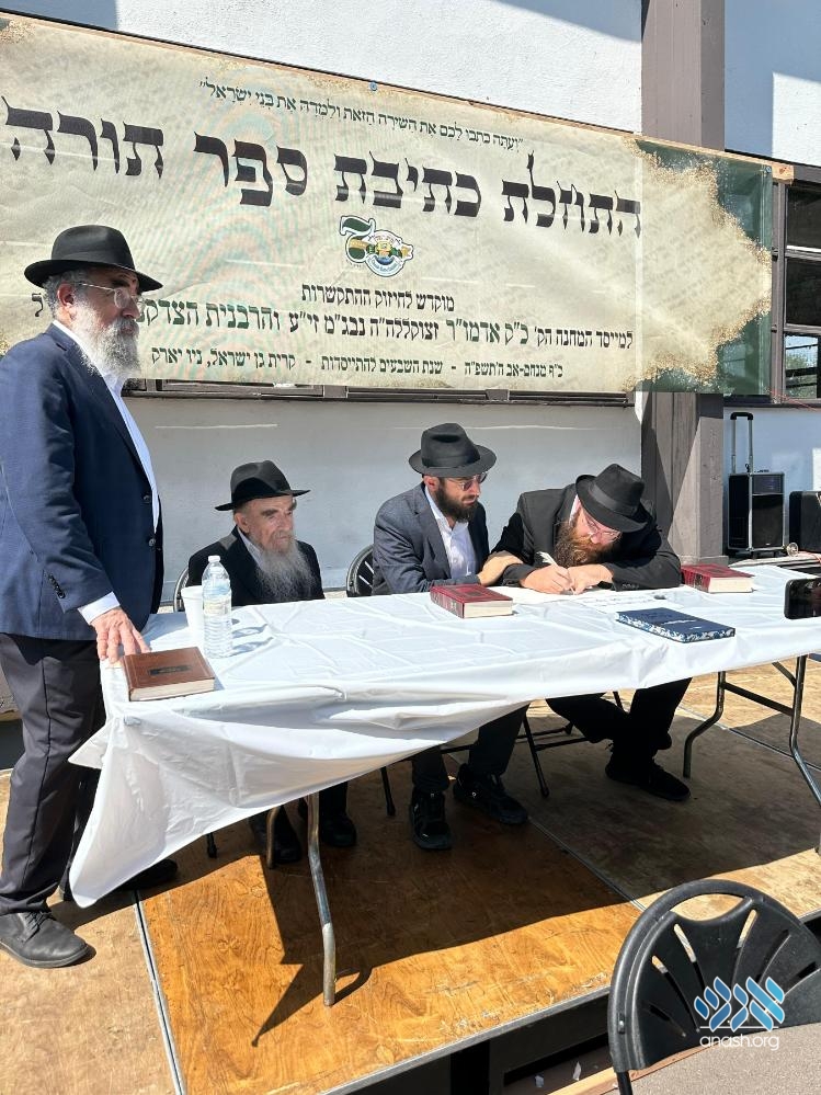Marking the 70th summer since the establishment of Camp Gan Yisroel in 5716 (1956), a new Sefer Torah was started at the first Camp Gan Yisroel, now in Parksville, NY, with the participation of rabbonim who came for the annual Yarchei Kalah program.