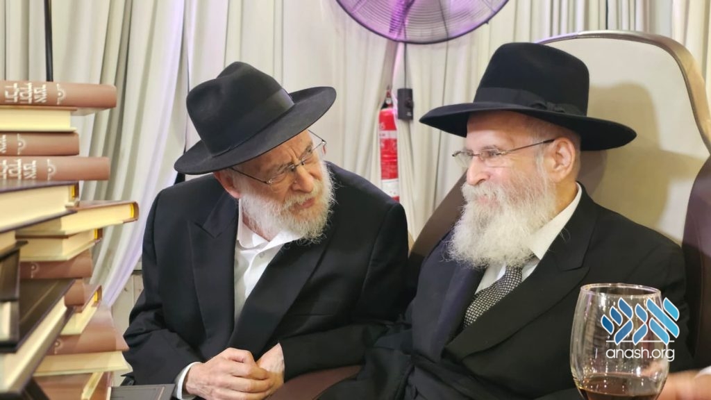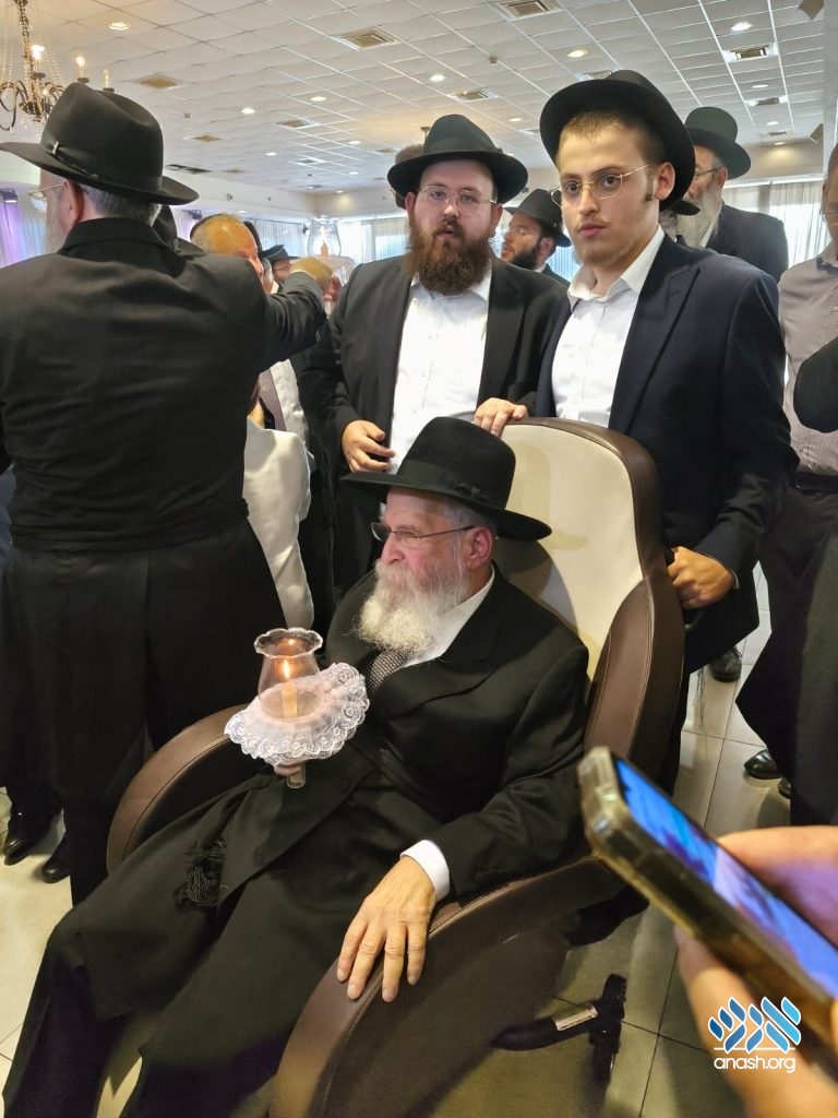 Boruch Rofei Cholim: After being released from the hospital where he was in critical condition, Rabbi Yochanan Gurary – Chief Rabbi of Cholon and a member of the Beis Din Rabbonei Chabad in Eretz Yisroel – attends the chassuna of his granddaughter, where he was mesader kidushin.