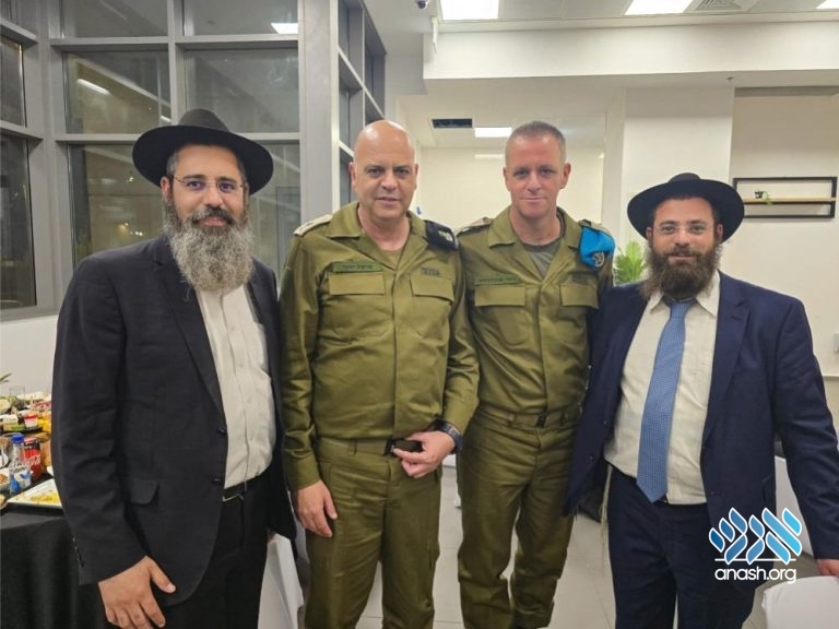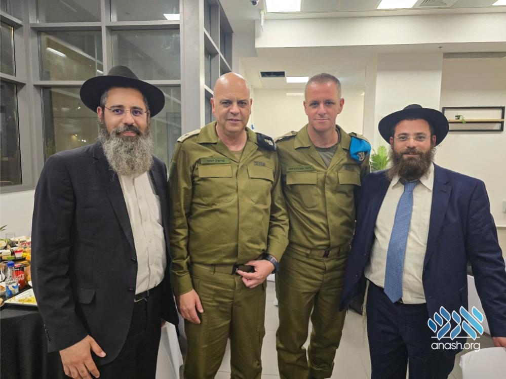 At a ceremony marking the change of command of the IDF Technology and Logistics Division, Rabbi Menachem Mendel Ofen, shliach to the IDF and security forces, and his brother Rabbi Shmuel Ofen, wished outgoing General Michel Yanko and incoming General Rami Abudraham blessings and success.