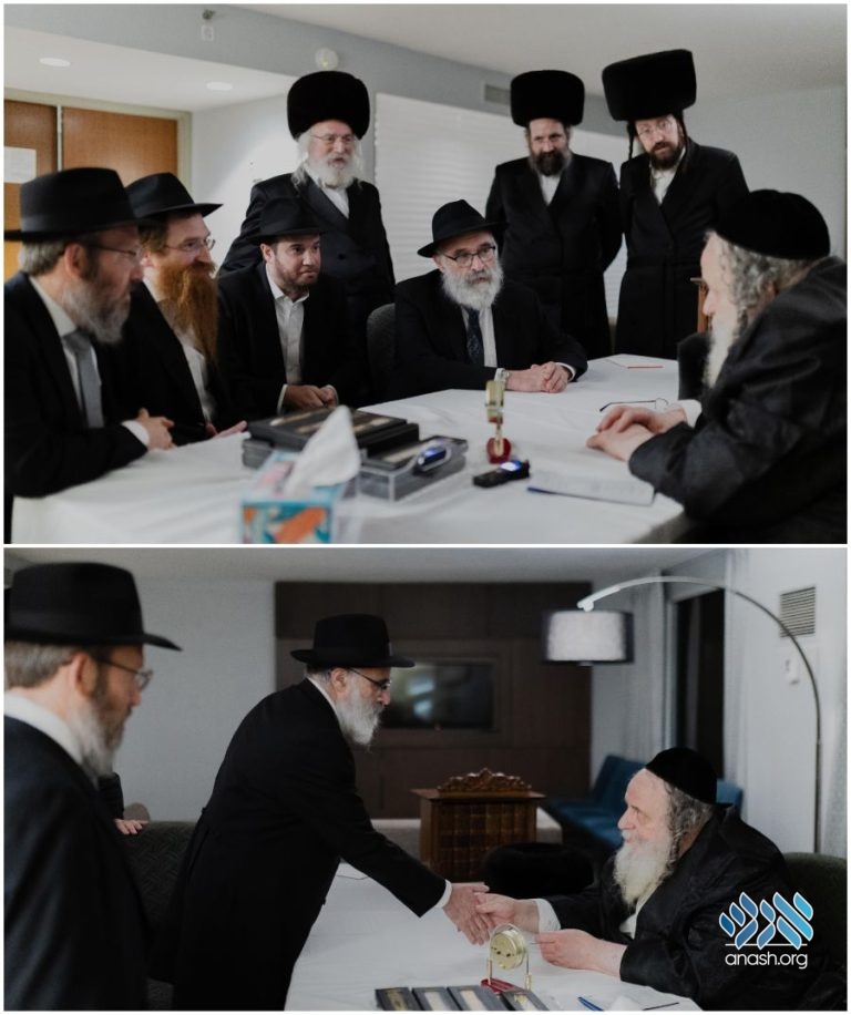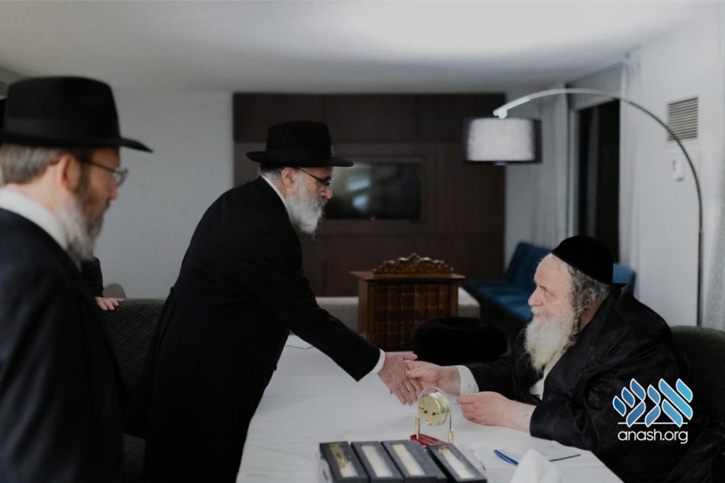 At a Shabbos for supporters taking place this week in Atlanta, Harav Shaul Alter, rov of the Gerrer Pnei Menachem community, met with local shluchim Rabbi Yossi New, Rabbi Mendy Gurary, Rabbi Alexander Piekarski, and Rabbi Dovi Barber, who shared Chabad’s activities in spreading Torah and Yiddishkeit.