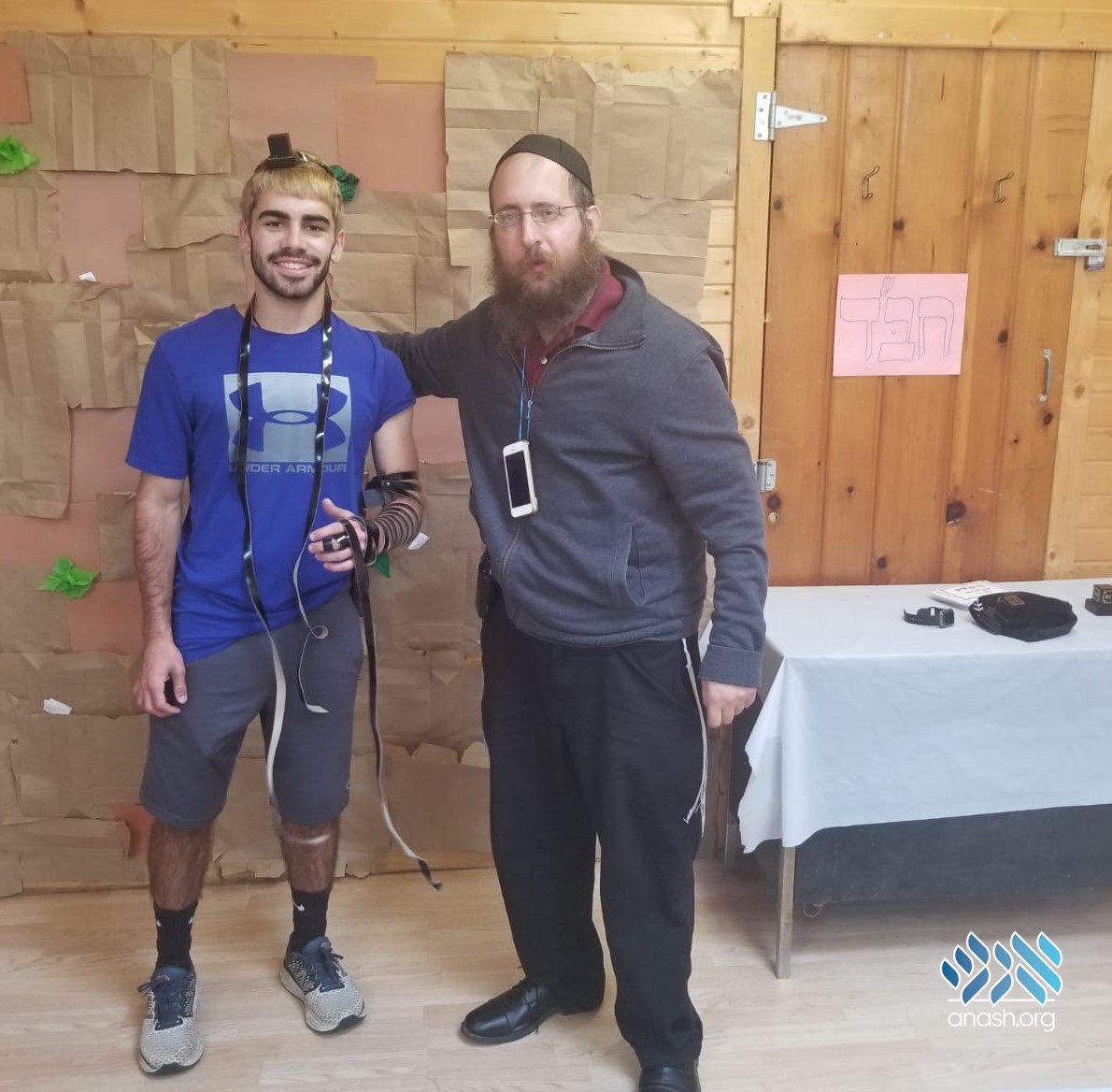 One day at the camp was dedicated to Eretz Yisroel and the girls made a “Kosel” with a “Chabad Tefillin Stand.” Jewish workers at the campsite were invited to “put on Tefillin by the Kosel,” and many agreed.