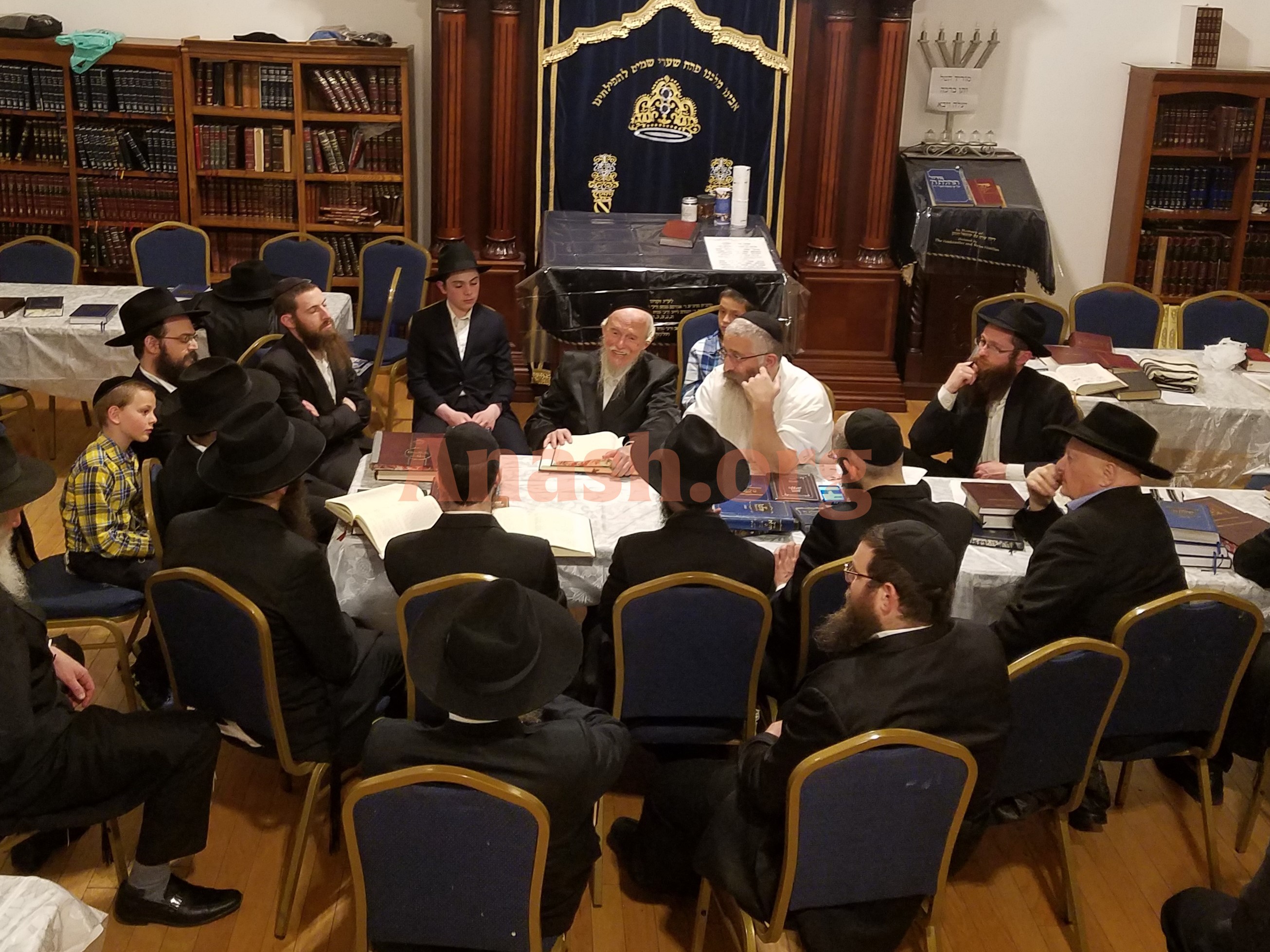 Reb Chaim Sholom Deitsch, Rosh Kolel of Tzemach Tzedek Kolel in Yerushalayim, gives a shiur to locals and guests in Kingston, PA.