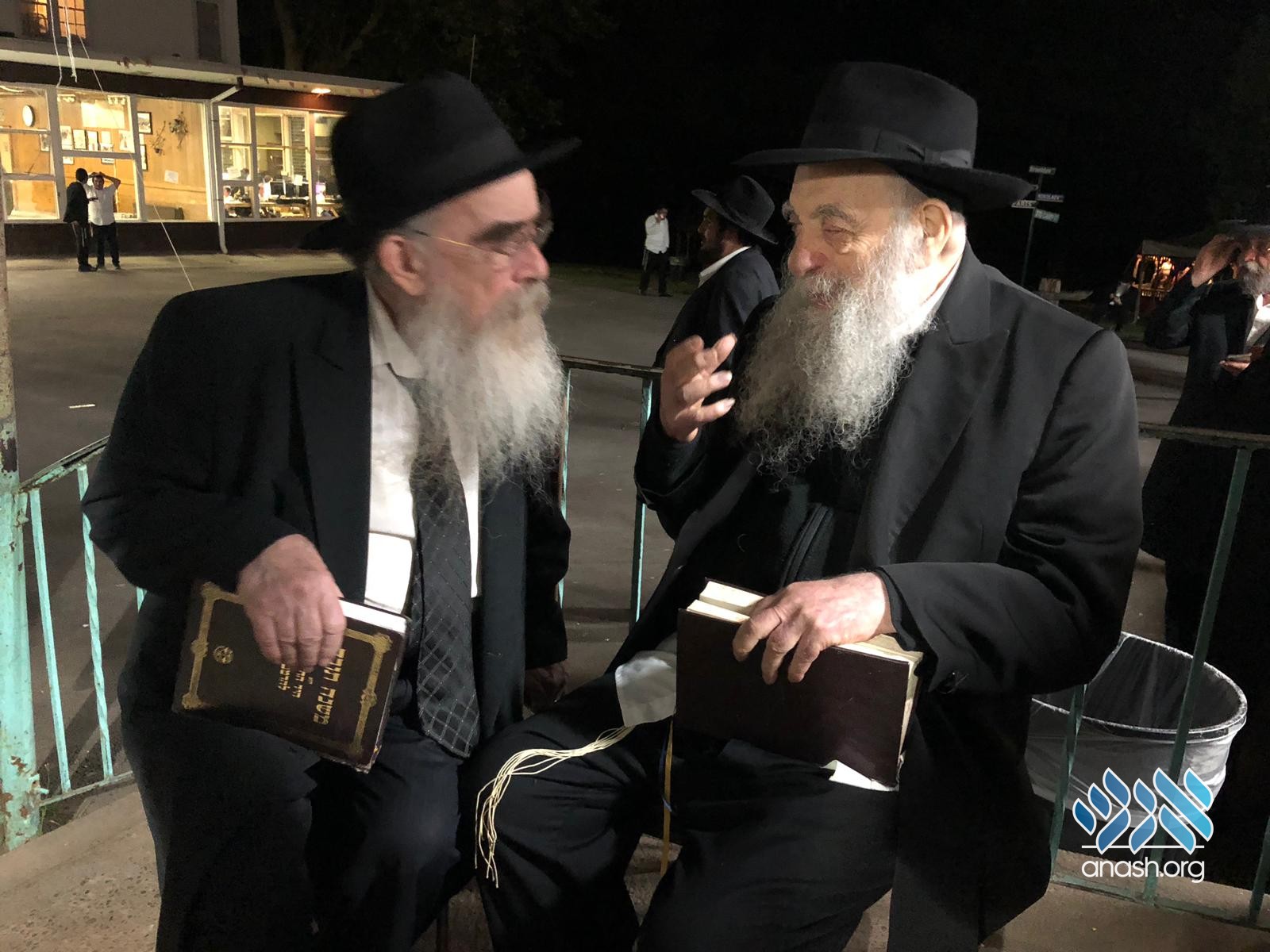 Reb Yoel Kahan conversing with Rabbi Avrohom Shemtov at Camp Gan Yisroel tonight.